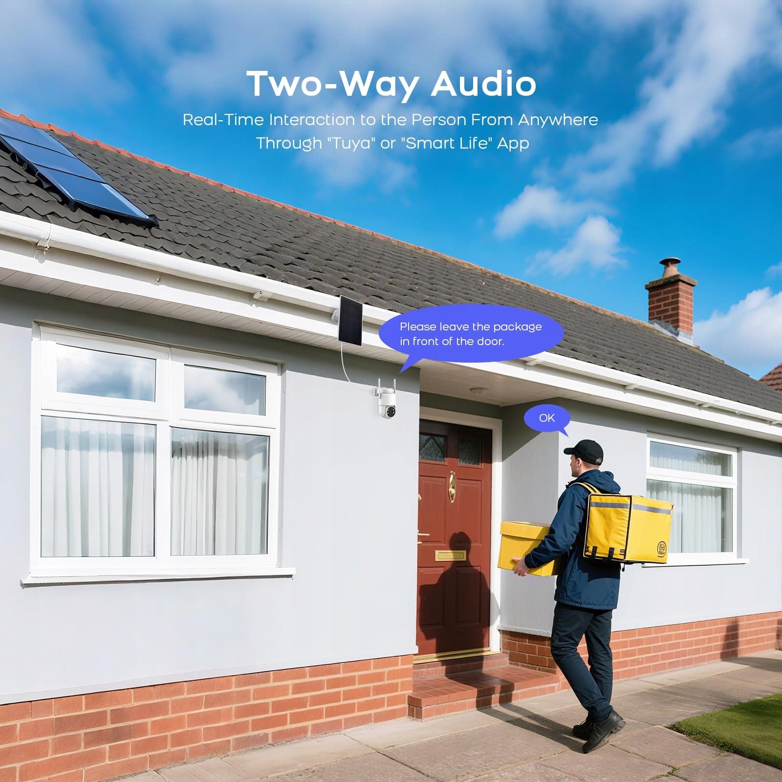 [ Zasilanie solarne i powiadomienia w czasie rzeczywistym ]: Dzięki odłączanemu panelowi solarnemu i akumulatorowi wielokrotnego ładowania kamera bezpieczeństwa działa 365 dni w roku bez konieczności wymiany baterii. Dzięki temu masz poczucie bezpieczeństwa. Możesz umieścić kamerę gdziekolwiek na swojej posesji, nie martwiąc się o gniazdka, i cieszyć się niezawodnym bezpieczeństwem przez cały rok. Otrzymuj powiadomienia w czasie rzeczywistym o wykryciu ruchu, osób lub dźwięków.