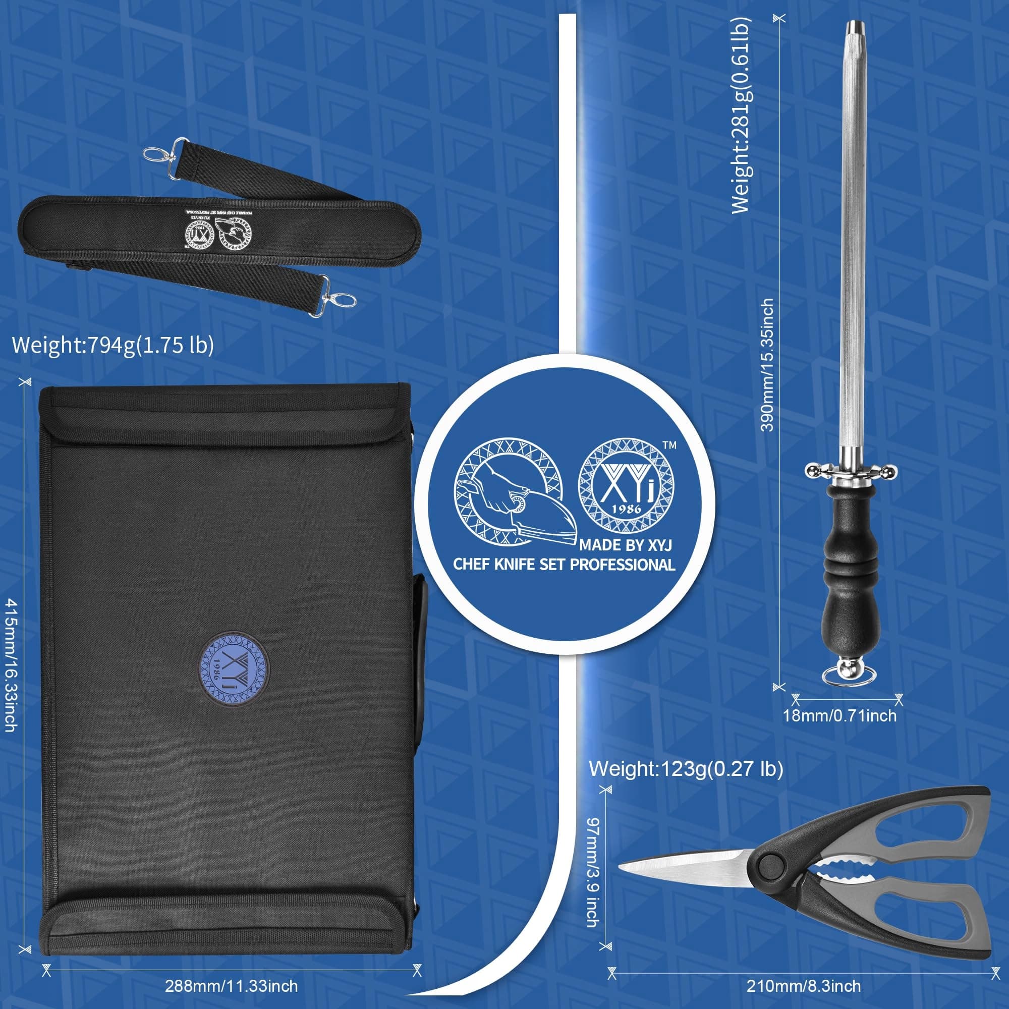 XYJ Zestaw 10 Noży Kuchennych z Niebieską Torbą i Akcesoriami | Premium Supply