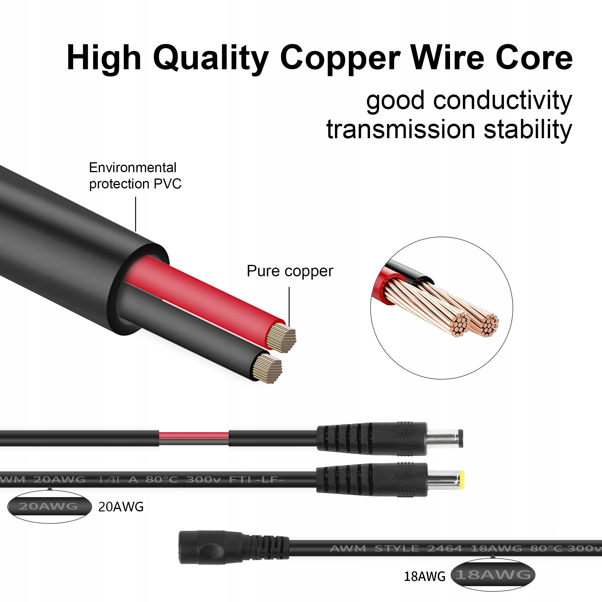 Przedłużacz 12 V wykonany jest z czystej miedzi i PVC, ma niższy opór właściwy i lepszą przewodność elektryczną.