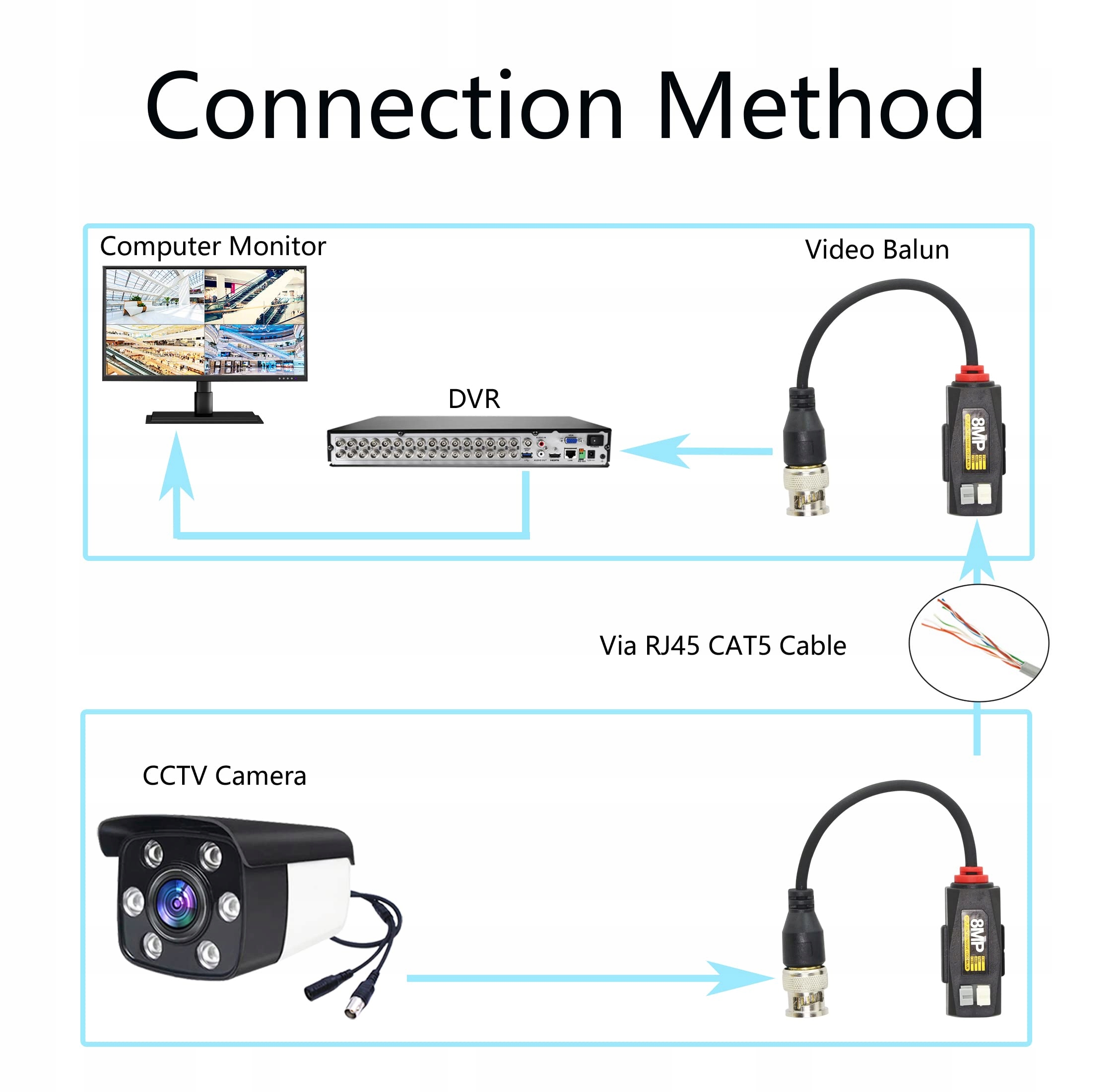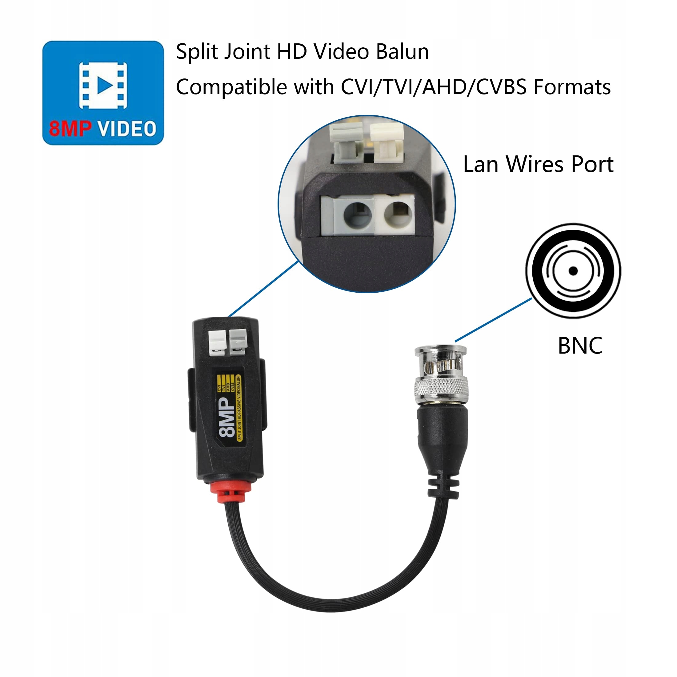 YACSEJAO Video Balun BNC Do Systemów CCTV 4K 1080P 8MP 1 Para