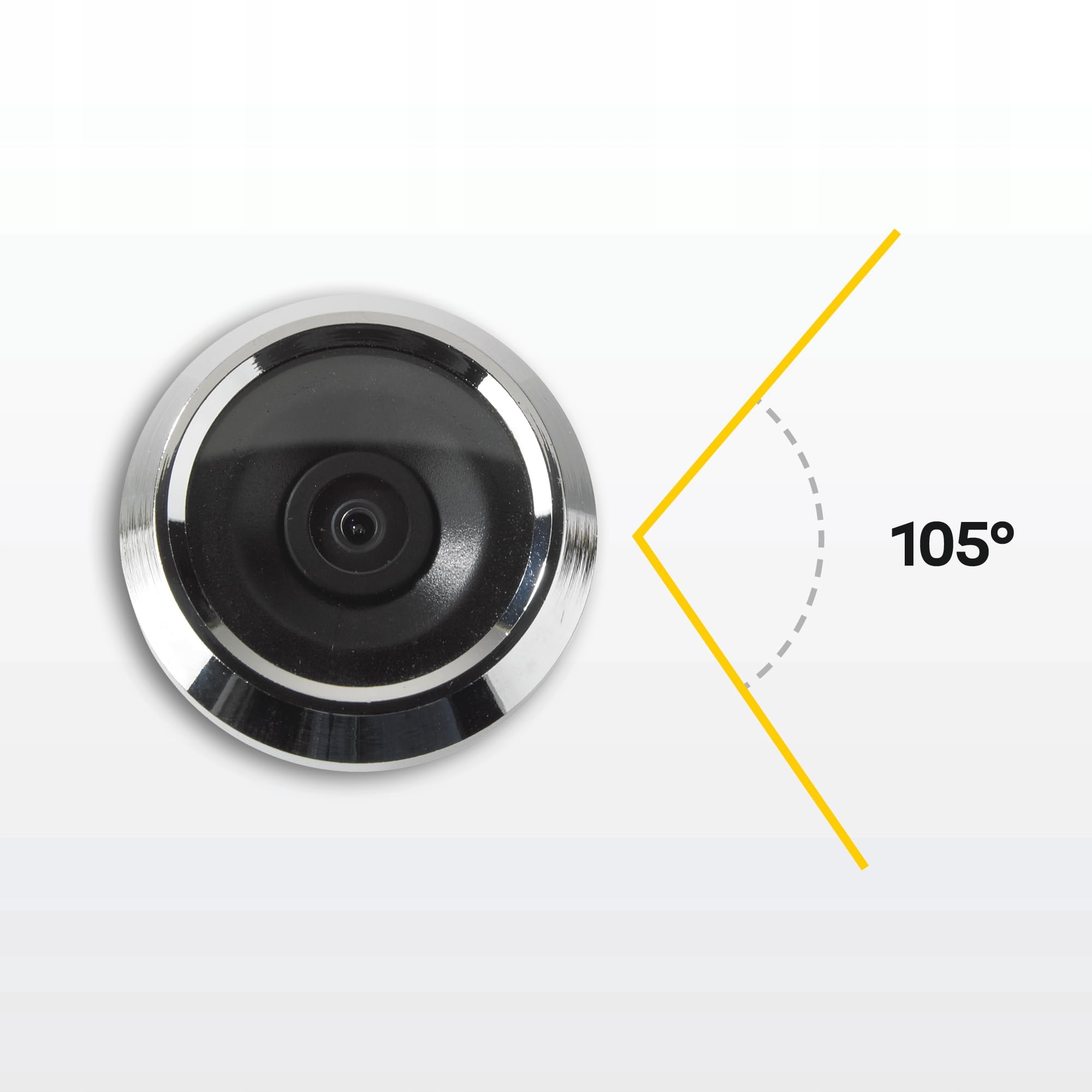 CYFROWY STANDARDOWY WIZJER DRZWIOWY: Dzięki podglądowi na żywo, elastycznemu dopasowaniu do różnych drzwi w twoim domu oraz kątowi widzenia 105 stopni zawsze wiesz, kto stoi przed twoimi drzwiami, dzięki czemu możesz być spokojny