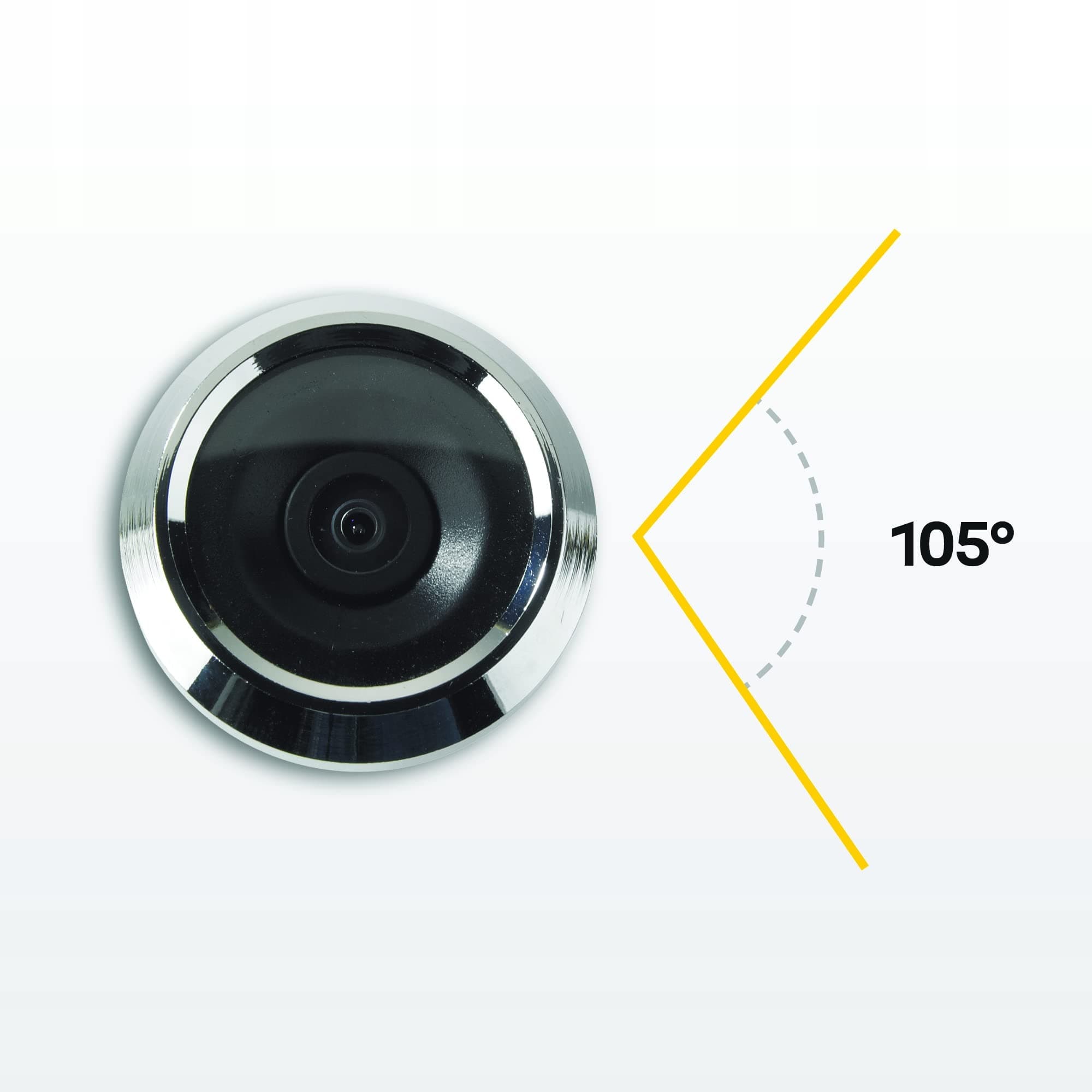 CYFROWY STANDARDOWY WIZJER DRZWIOWY: Dzięki podglądowi na żywo, elastycznemu dopasowaniu do różnych drzwi w Twoim domu oraz kątowi widzenia 105 stopni zawsze wiesz, kto stoi przed Twoimi drzwiami, dzięki czemu możesz być spokojny