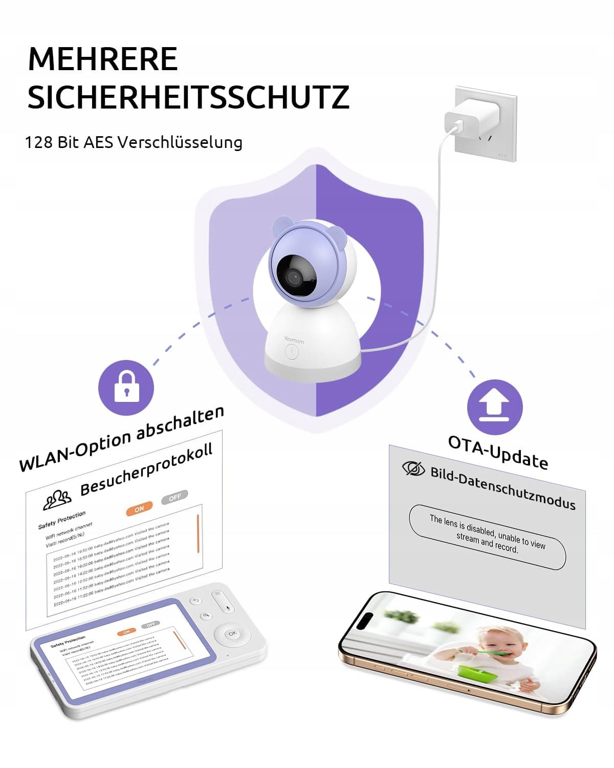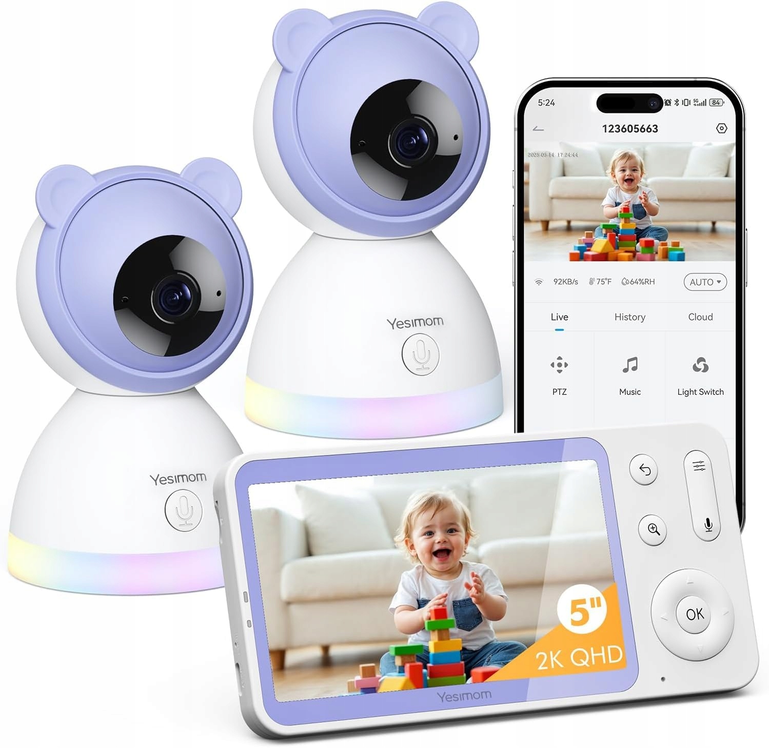 YESIMOM Babyfon Kamera 2K 3MP 55 HD WLAN Nianie Elektroniczne IR RGB Noc | Premium Supply