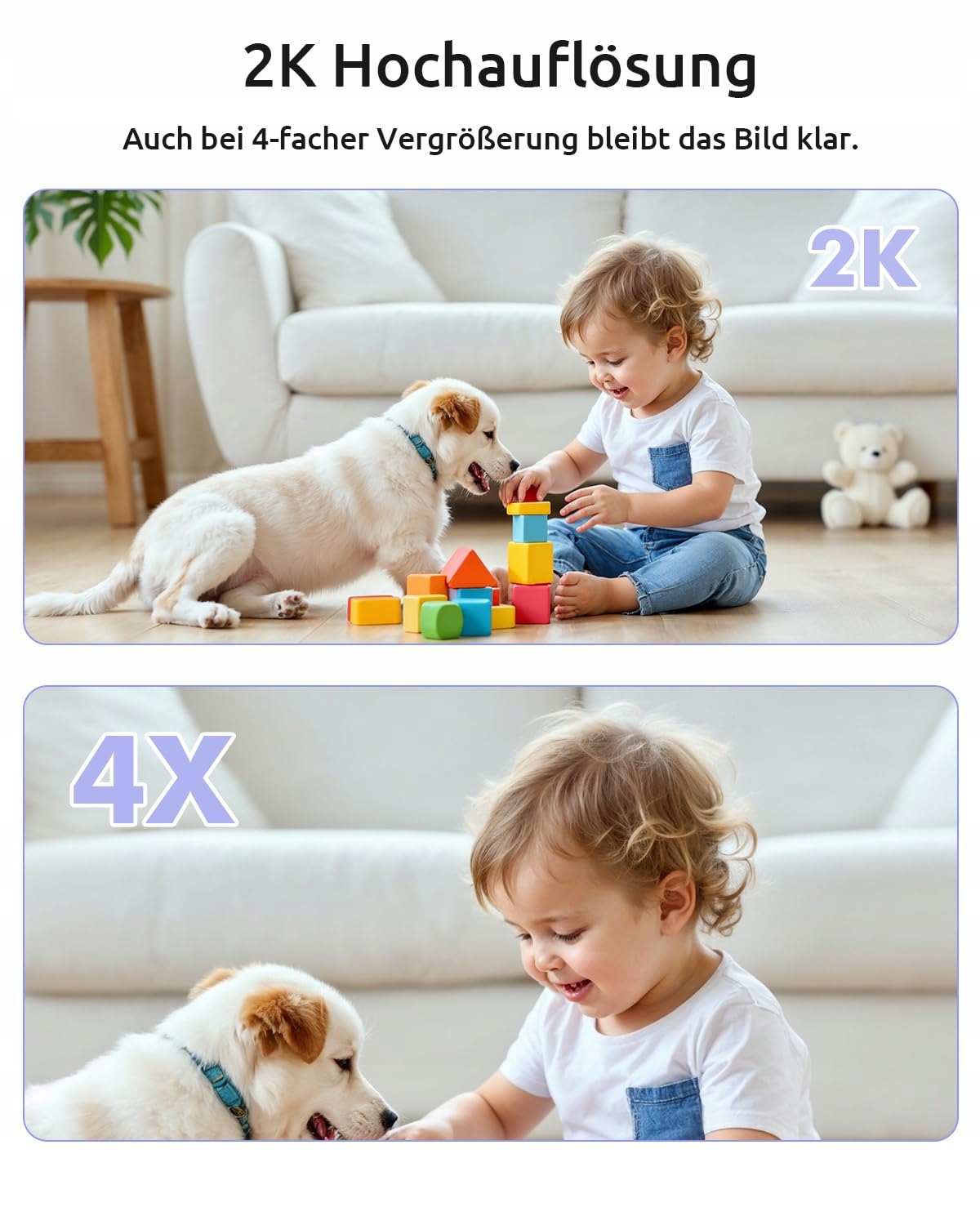 【Pełna ochrona bez martwych stref】Babyfon może objąć każdy kąt i oferuje panoramiczny widok dzięki funkcji obracania o 355° i pochylania o 60°, a cyfrowy 4-krotny zoom zapewnia, że żaden szczegół nie zostanie pominięty. Możesz ręcznie sterować widokiem babyfonu z kamerą lub aktywować automatyczne śledzenie i rozmawiać ze swoim dzieckiem.