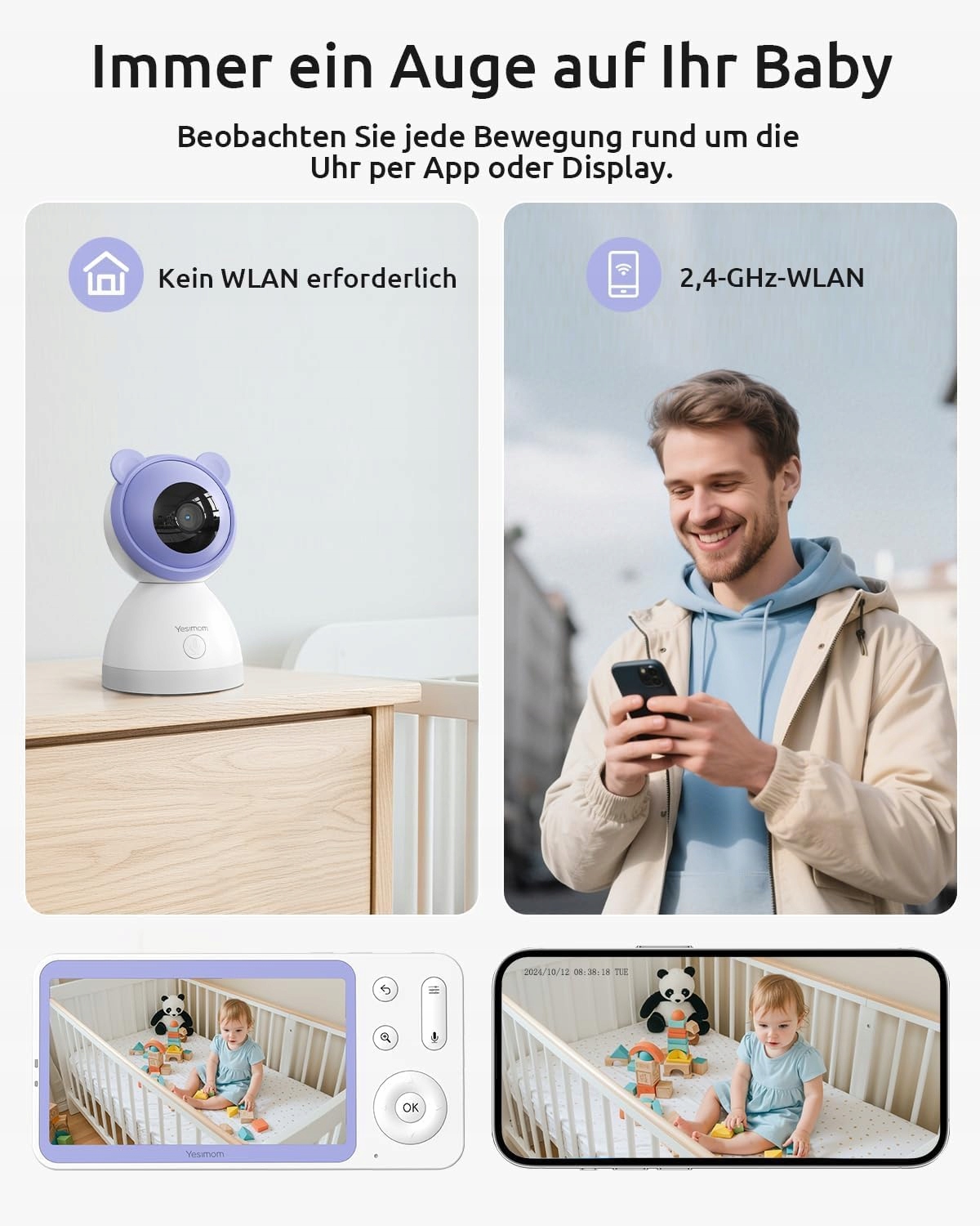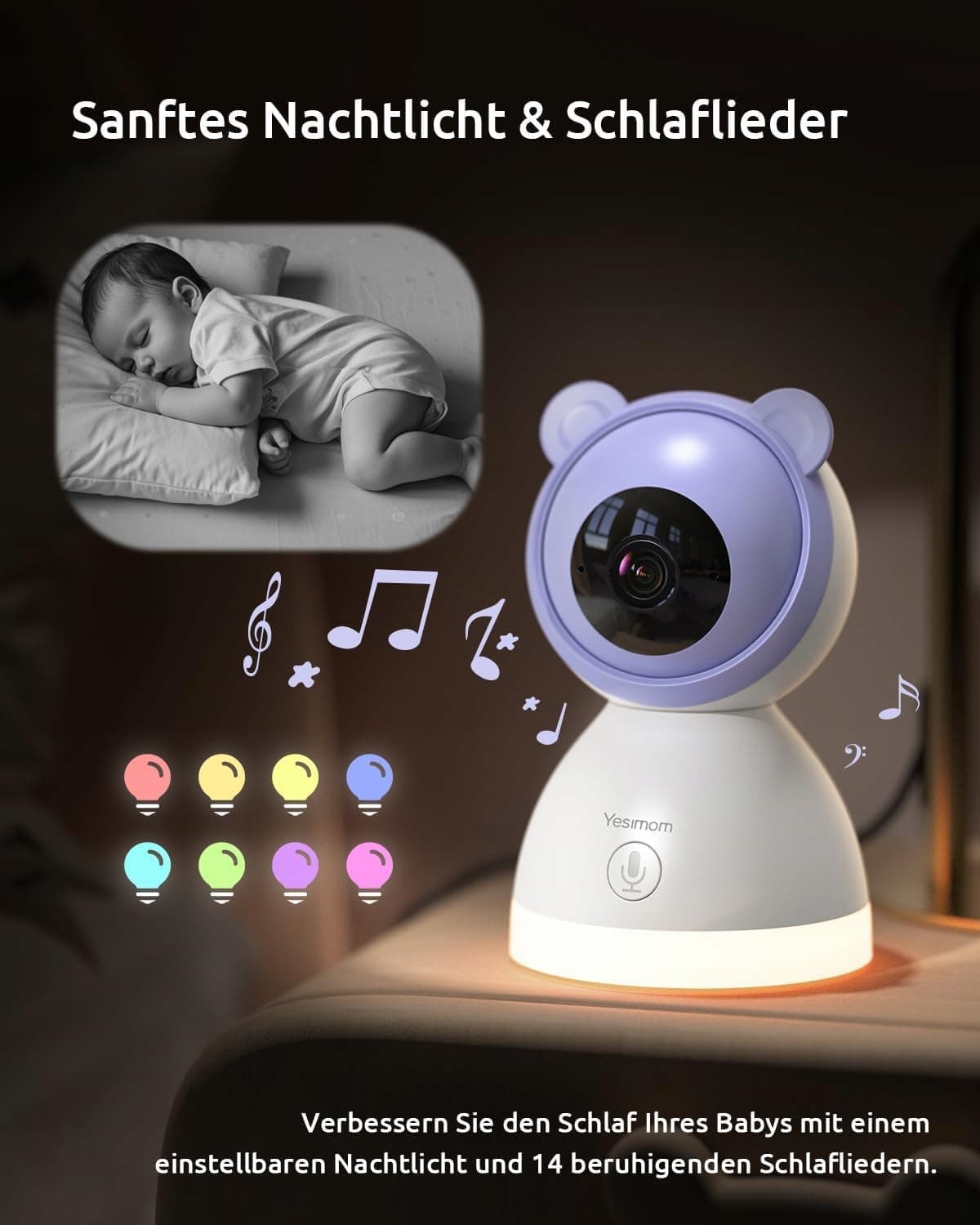 YESIMOM Babyfon Kamera 2K 5 Cali HD WLAN Z Aplikacją Nocne Widzenie AI