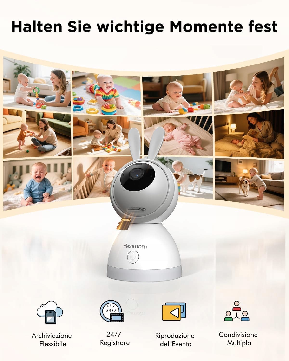 YESIMOM Babyfon Kamera 2K 5" WLAN Monitor Niania PTZ 360 IR Nocny Tryb | Premium Supply
