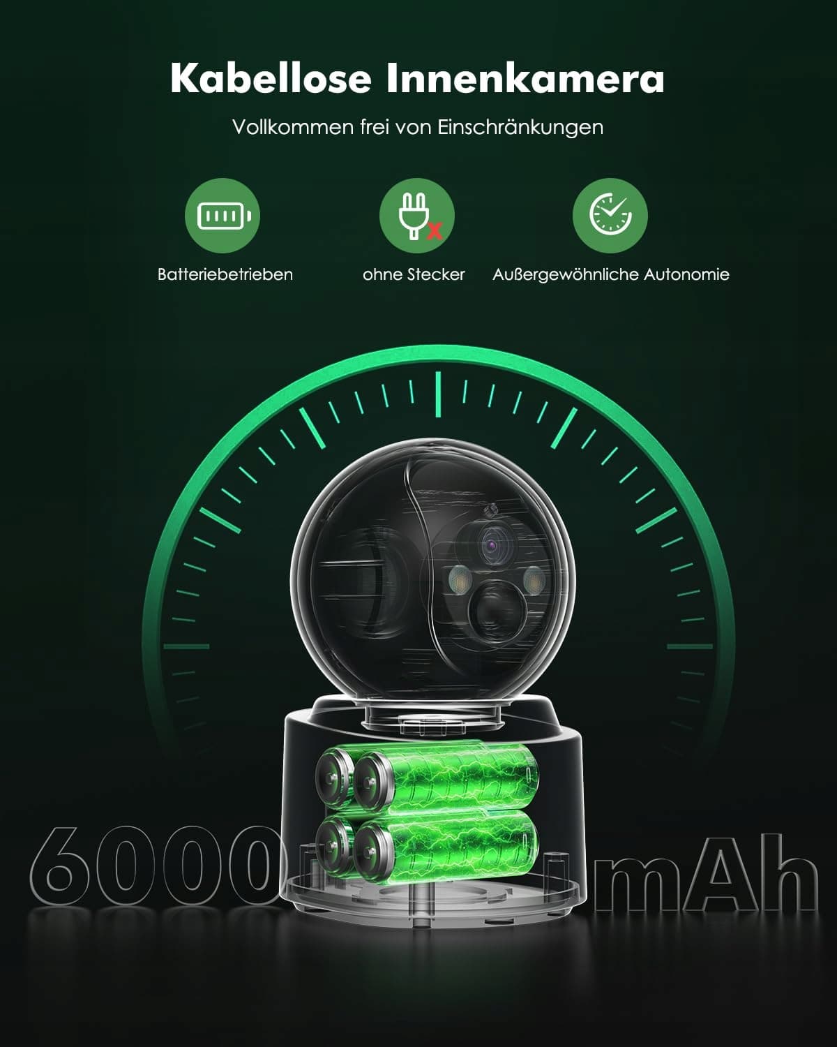 🔋【Akumulator wielokrotnego ładowania i 100% bezprzewodowa】Bezprzewodowa kamera wewnętrzna posiada profesjonalny akumulator o dużej pojemności 6000 mAh. 100% bezprzewodowa – koniec z uciążliwymi kablami! Kompaktowa i przenośna, można ją umieścić w dowolnym miejscu. Zainstaluj kamerę w dowolnym miejscu w domu, aby zapewnić nieprzerwaną kontrolę i maksymalną ochronę rodziny.
