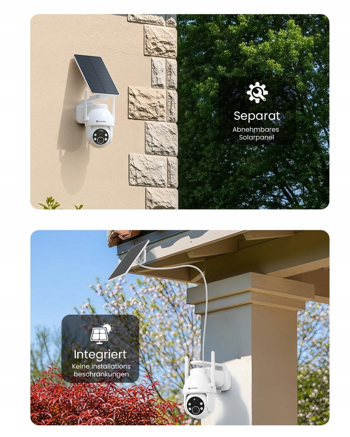 【2,4 GHz WLAN i energia słoneczna】Profesjonalna kamera solarna do monitoringu z kompatybilnością 2,4 GHz WLAN (bez 5G) + wydajnym akumulatorem 9000mAh. 355° poziomy + 90° pionowy zakres obrotu przez aplikację dla nieprzerwanego monitoringu 360°. Panel solarny dostarcza całoroczną autonomiczną energię - idealne do trudno dostępnych miejsc.