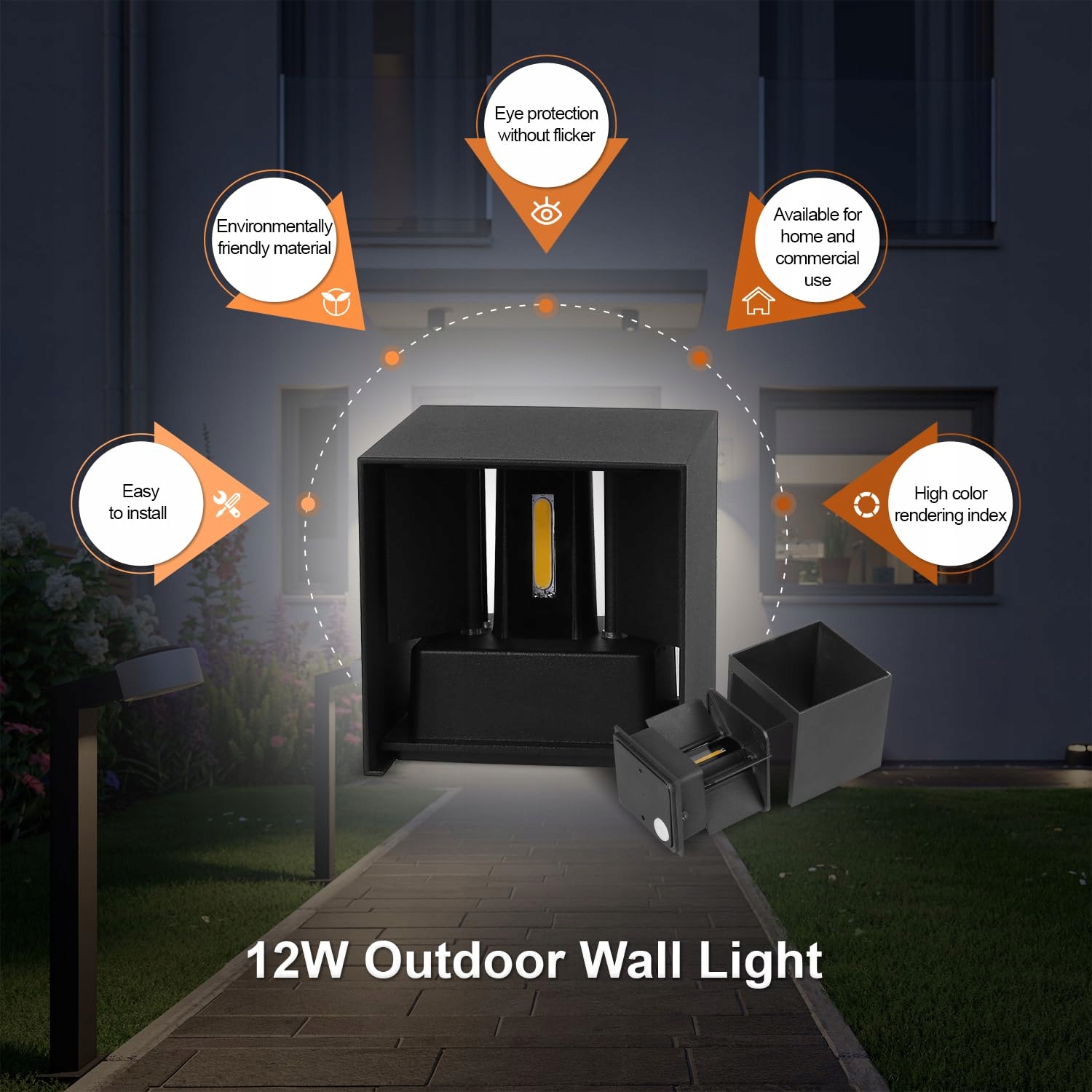 Doskonala jakość: Te zewnętrzne lampy ścienne wykonane są z wysokiej jakości aluminium, które charakteryzuje się doskonałą odpornością na rdzę, promieniowanie słoneczne i wysoką temperaturę. 12W lampa ścienna LED wykorzystuje wysokiej jakości źródła światła COB, nie migocze, ma żywotność do 50 000 godzin, jest energooszczędna i przyjazna dla środowiska.