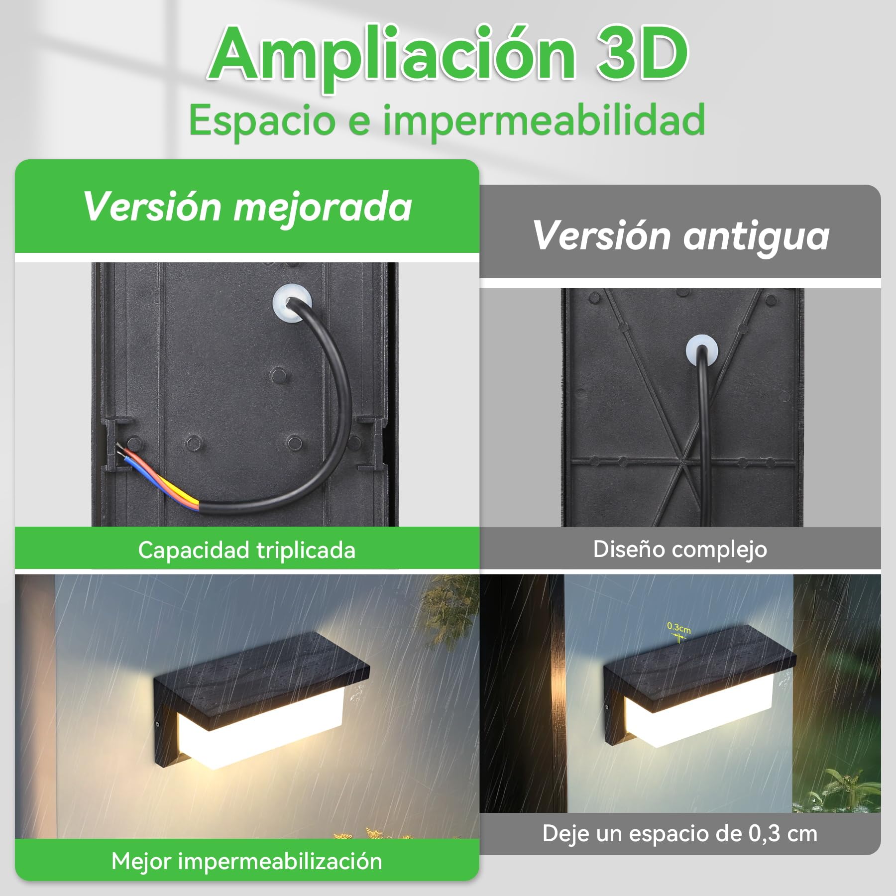 Wodoodporność IP65: Nasza lampa ścienna zewnętrzna jest wodoodporna zgodnie z normą IP65, dzięki czemu doskonale nadaje się do różnych trudnych warunków pogodowych oraz do szerokiego zakresu zastosowań wewnętrznych i zewnętrznych, takich jak klatki schodowe, salony, balkony, ogrody i tarasy.