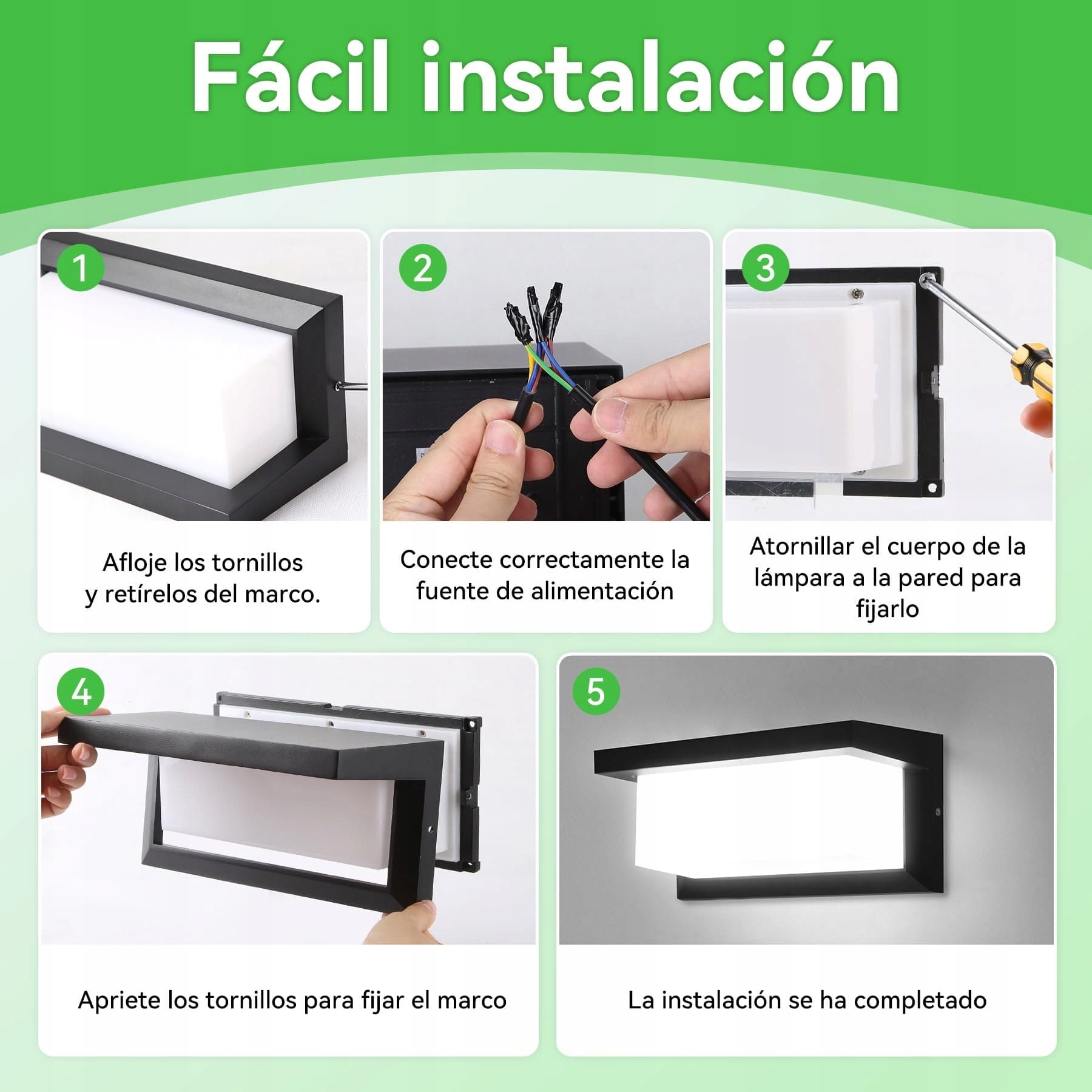 Łatwa do czyszczenia: Powierzchnia obudowy lampy ściennej jest gładka i może być łatwo zdjęta. Brud i kurz nie przylegają łatwo do lampy, dzięki czemu lampa zewnętrzna nie wymaga częstego czyszczenia.
