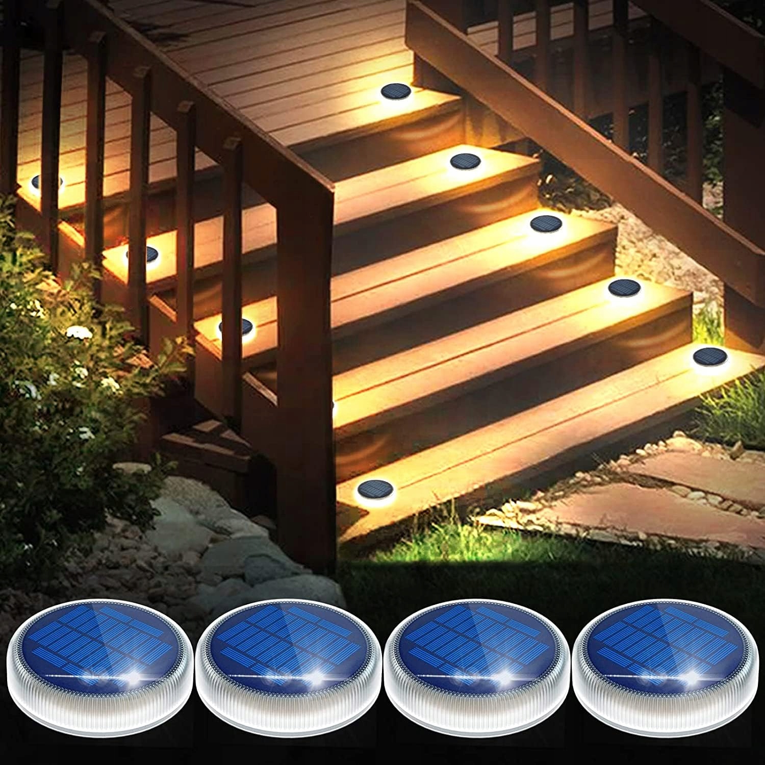 [Bez wiercenia lub montażu na śruby] 🔆 Oświetlenie zewnętrzne solarne z jednoczęściowym okrągłym designem, można zamontować na patio, w ogrodzie, na ścieżce, podjeździe, pokładzie, schodach... Można również łatwo przymocować do słupków ogrodzeniowych, szop za pomocą dwustronnej taśmy klejącej.
