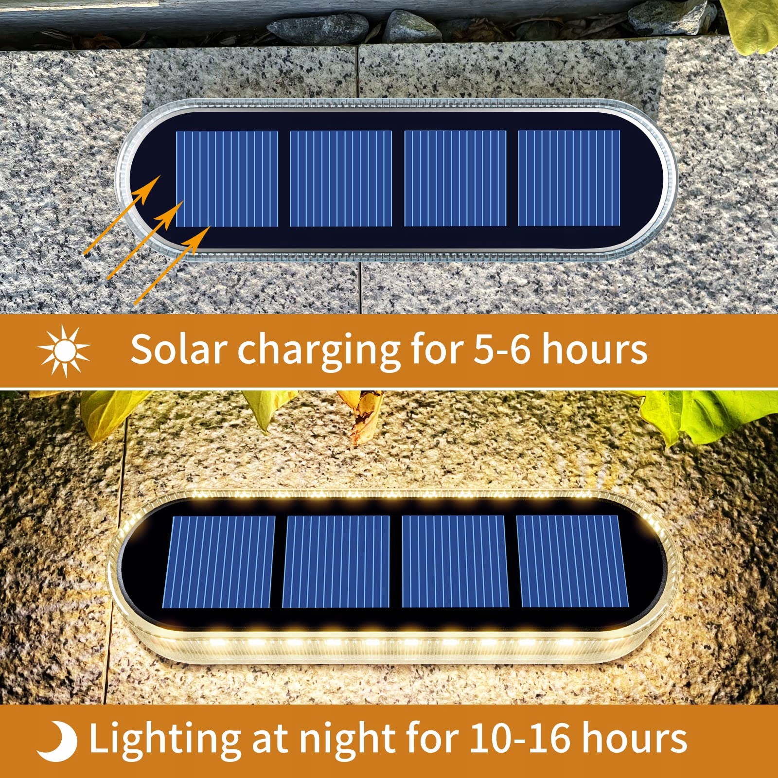 [Jaśniejsze i dłuższe oświetlenie]Nasze lampy solarne na zewnątrz mają wbudowane 30 wysokiej jakości ultra-jasnych diod LED, zapewniają stabilne i jasne źródło światła w 360°, i są wyposażone w baterię o dużej pojemności 700mAh; Testy wykazały, że nasza lampa solarna może świecić nieprzerwanie przez 16 godzin po naładowaniu przez 4-6 godzin w wystarczającym świetle słonecznym.