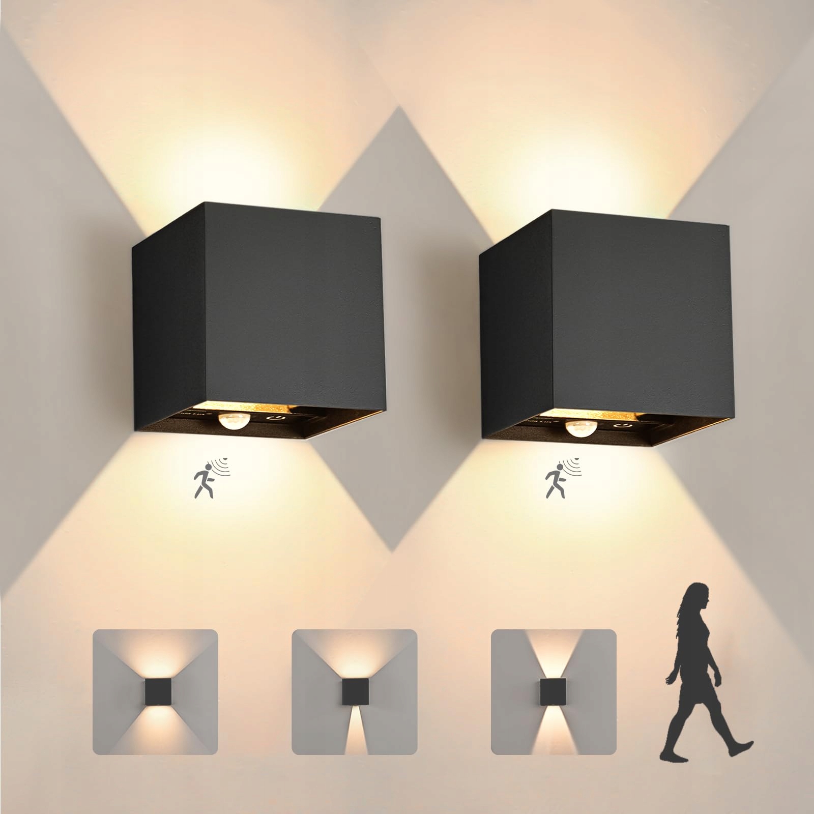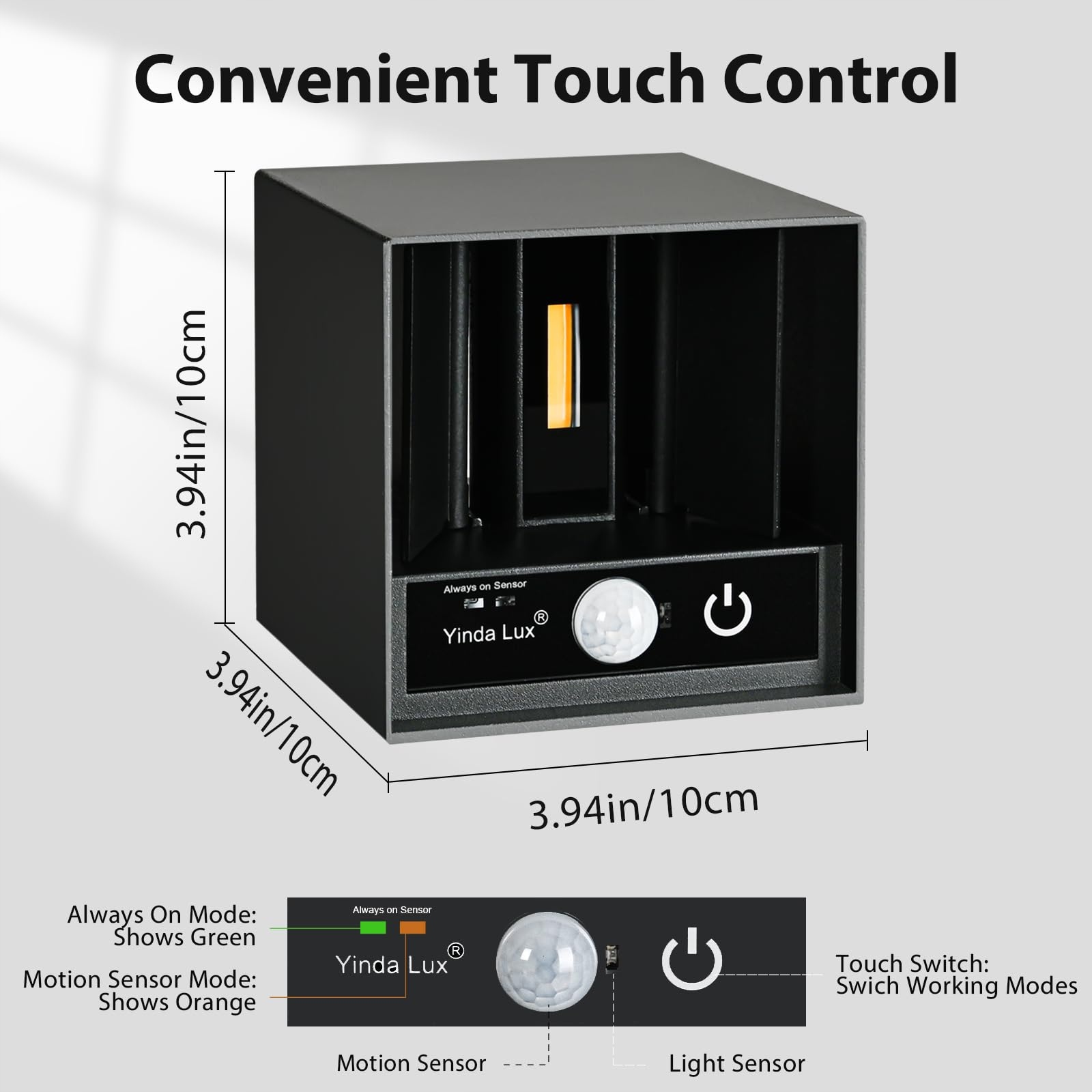 YindaLux LED Lampa ścienna do wnętrz/na zewnątrz 12W IP65 Lampa zewnętrzna z czujnikiem ruchu, 3000K Lampa zewnętrzna z dotykowym sterowaniem, lampa zewnętrzna góra-dół z regulowanym kątem światła do sypialni, 2 sztuki