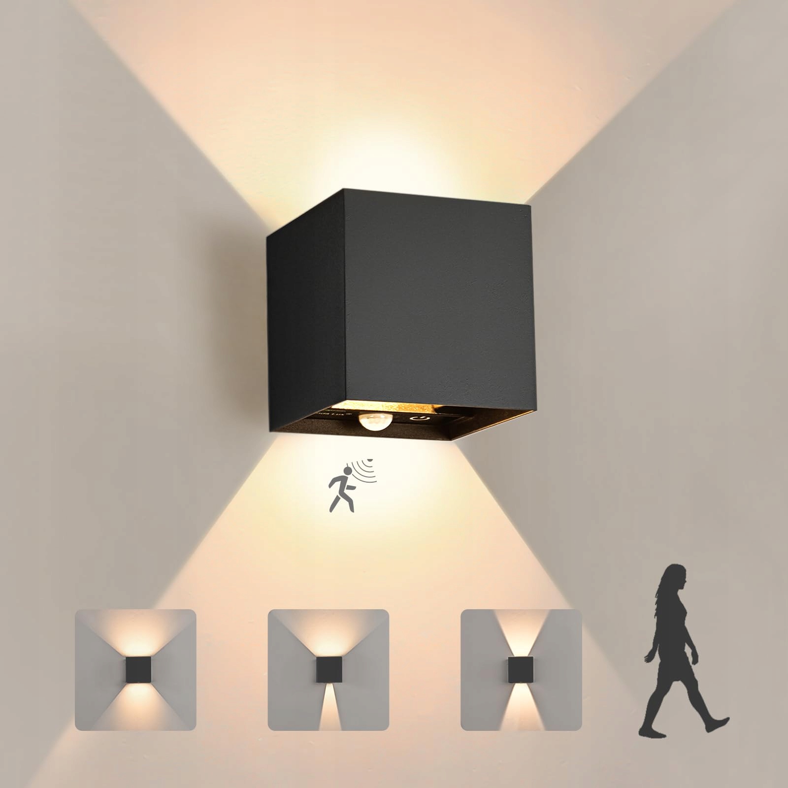 Ulepszony tryb czujnika: Nasza lampa ścienna do wnętrz wyposażona jest w wysoce czuły czujnik, który w trybie czujnika wykrywa ruch w kącie 120° i zasięgu 1–5 metrów. W nocy lub przy słabym oświetleniu lampa automatycznie włącza światło po wykryciu ruchu; gdy ruch ustaje, światło świeci przez 30 s, a następnie się wyłącza, co nie tylko chroni środowisko, ale także obniża rachunki za prąd.