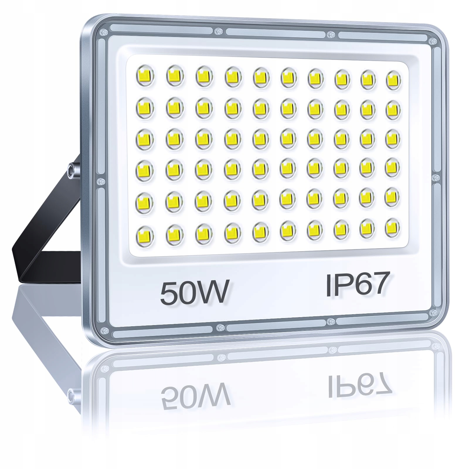 50W super jasny reflektor LED: 50W super jasny reflektor LED wykorzystuje wysokiej jakości diody SMD2835 z 60 małymi wypukłymi okrągłymi żarówkami, które zapewniają większy całkowity obszar oświetlenia niż zwykły reflektor, z jaśniejszym światłem i bez cieni czy olśnienia. Jest wielokrotnie jaśniejszy niż tradycyjna żarówka, ale oszczędza 85% energii. Ma żywotność do 50 000 godzin.