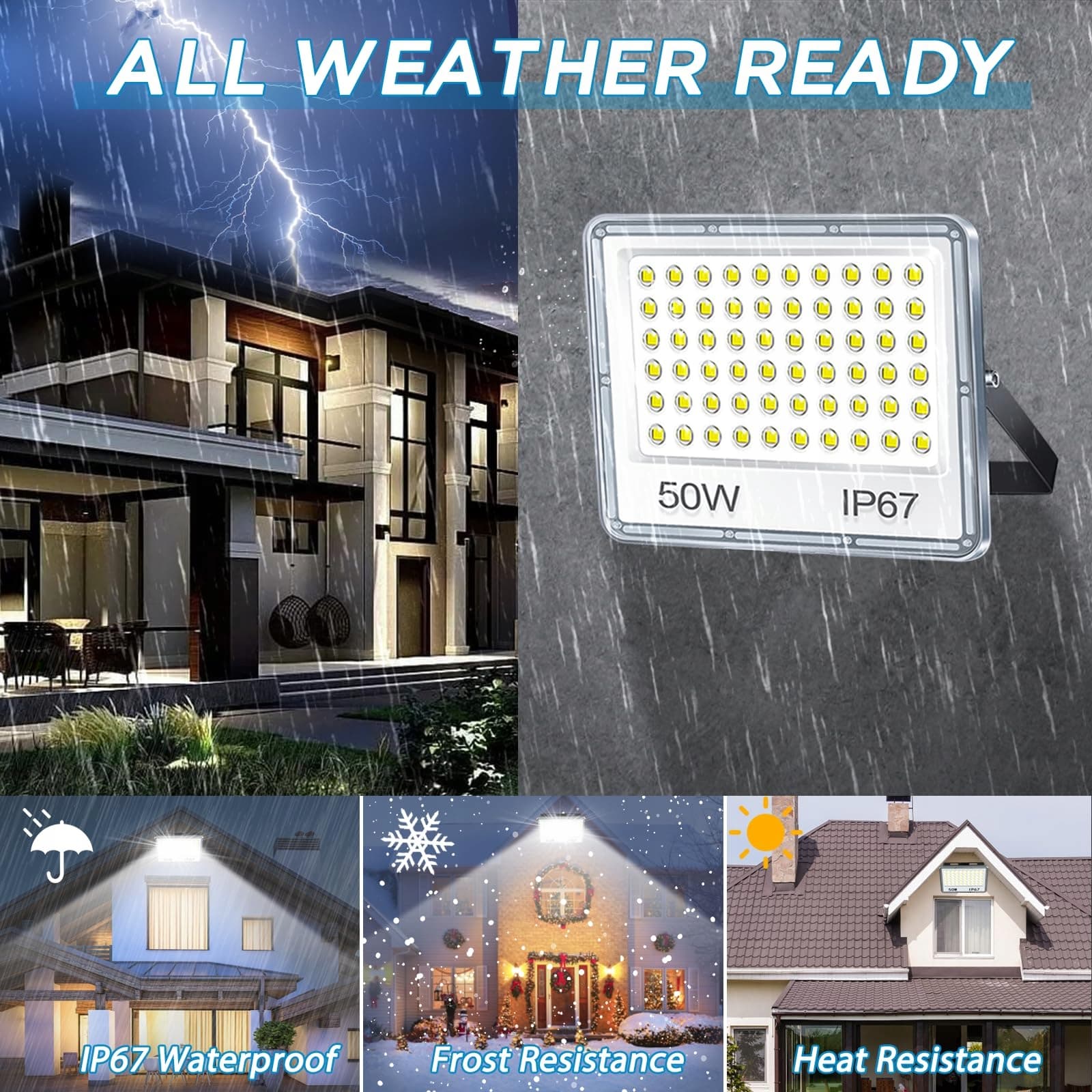 Wodoodporny reflektor zewnętrzny IP67: Ten najnowszy reflektor LED na zewnątrz wykonany jest z odlewu aluminiowego i PC, z klasą szczelności IP67, wyższą niż starsze reflektory na rynku, z doskonałą wodoodpornością, odpowiedni do użycia w deszczu i śniegu (przyjazna uwaga: aby zapewnić długą żywotność reflektora, prosimy nie zanurzać reflektora na długi czas pod wodą).