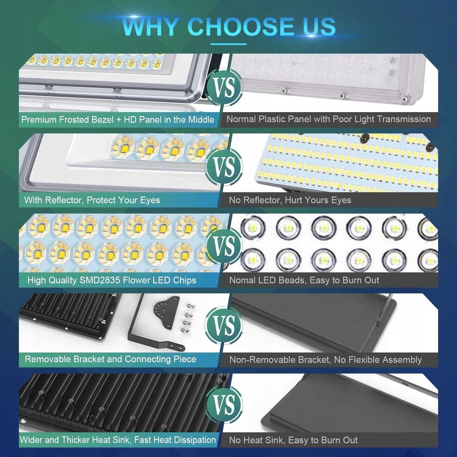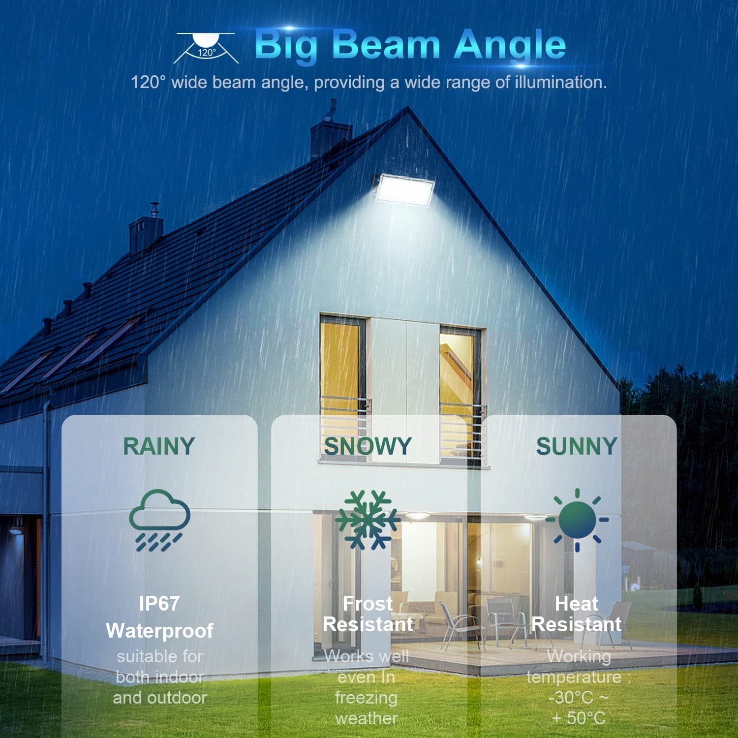 ️Dobre odprowadzanie ciepła reflektora LED na zewnątrz: Projekt tylnej części z odlewu aluminiowego jest wyposażony w szerszy i grubszy metalowy radiator, który zapewnia doskonałe odprowadzanie ciepła, a połączony design reflektora LED na zewnątrz znacznie poprawia odprowadzanie ciepła i zmniejsza koszty konserwacji, dzięki czemu reflektor LED na zewnątrz ma żywotność do 50 000 godzin.