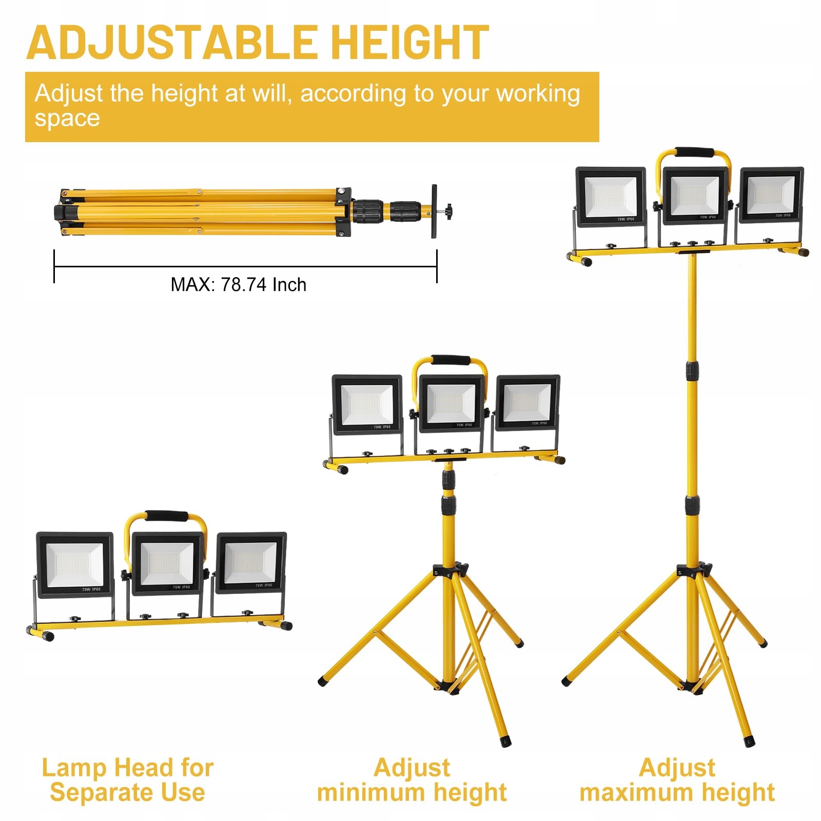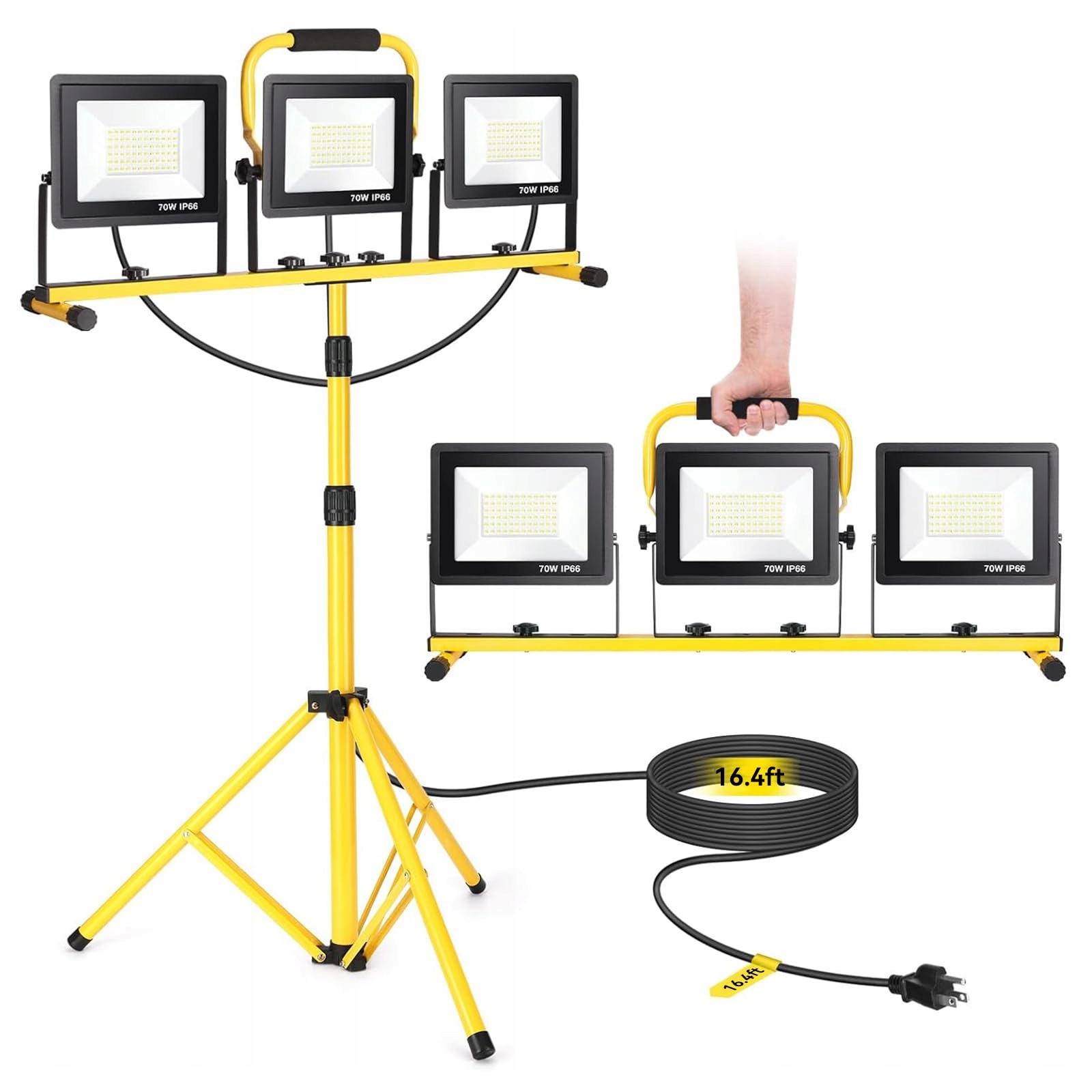Yofuly Reflektor budowlany ze statywem 3x70W, Reflektor LED Lampa budowlana 21000 lumenów Lampa robocza z indywidualnym przełącznikiem, kabel 5M/16.4FT, wysokość regulowana do max. 200cm Reflektor wewnętrzny zewnętrzny