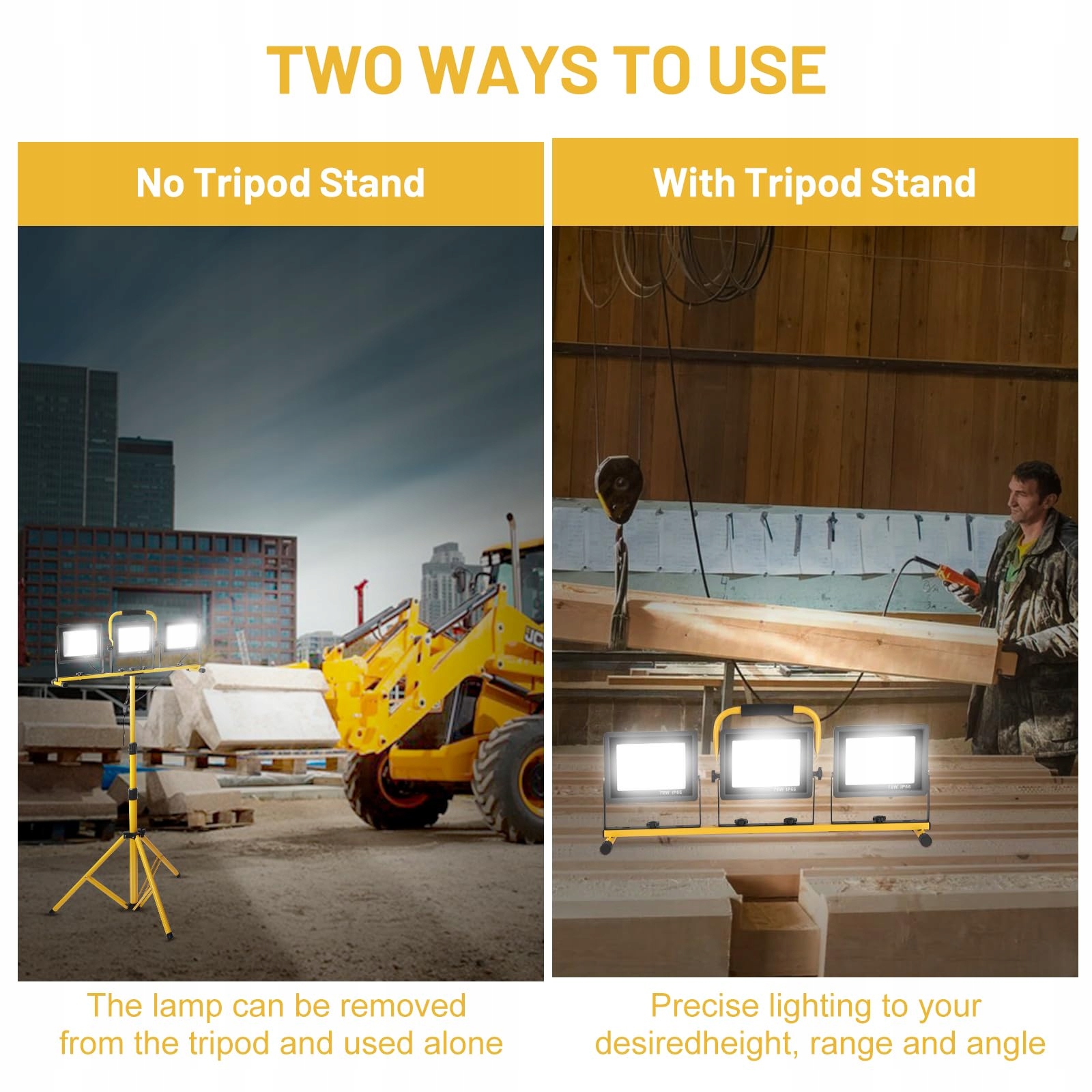 【Pojedynczy przełącznik & 16.4FT kabel zasilający】- Każdy reflektor LED ma indywidualny przełącznik na tylnej stronie, który może obsługiwać pojedyncze, podwójne lub potrójne oświetlenie lamp. Lampy są demontowalne i mogą być używane niezależnie z uchwytem. 5-metrowy/16,4-stopowy kabel zasilający sprawia, że lampa robocza jest bardziej wszechstronna do użytku w warsztatach, garażach, na kempingach, placach budowy, w ogrodach i wielu innych miejscach.