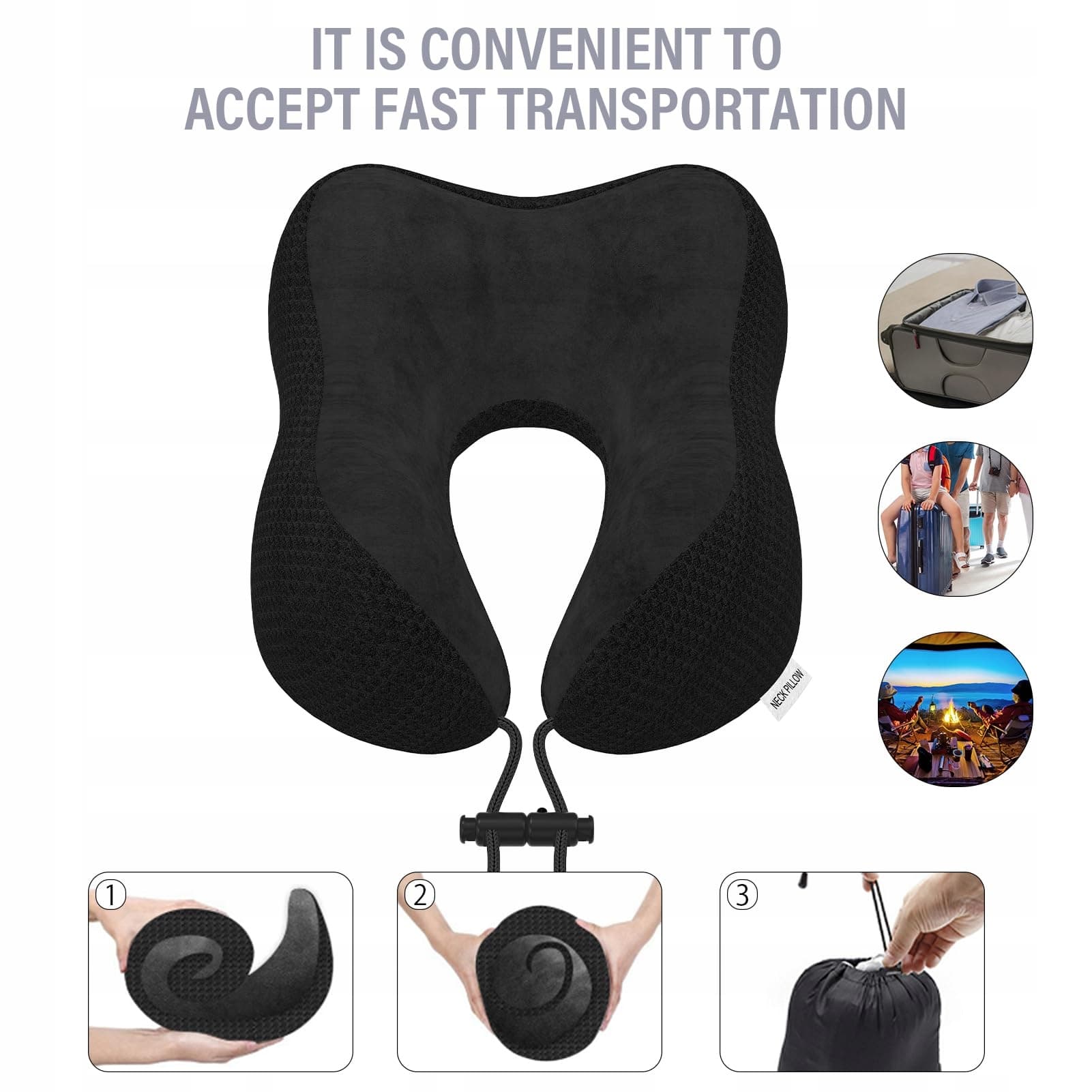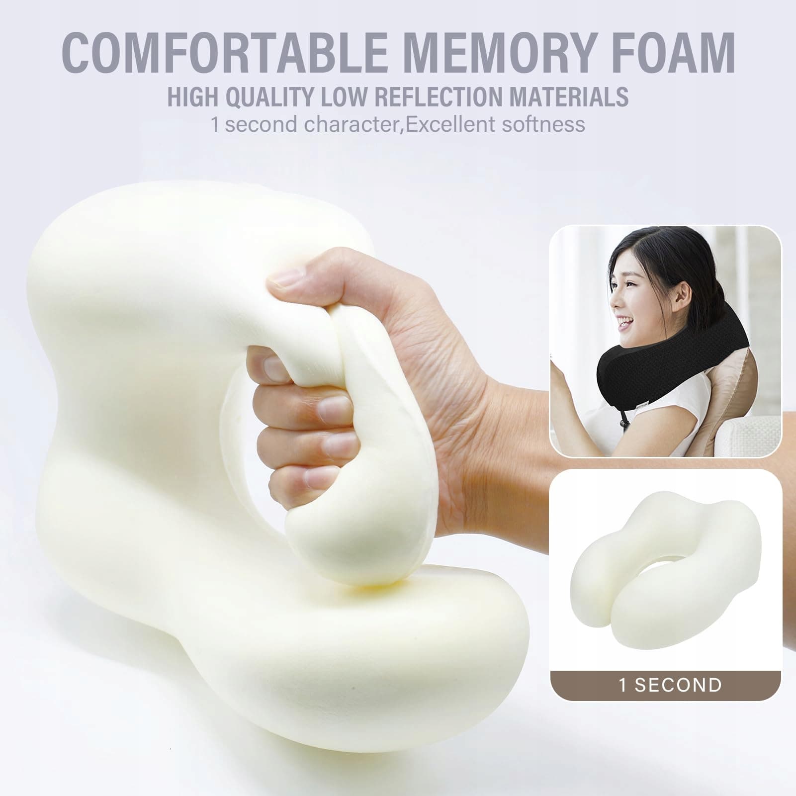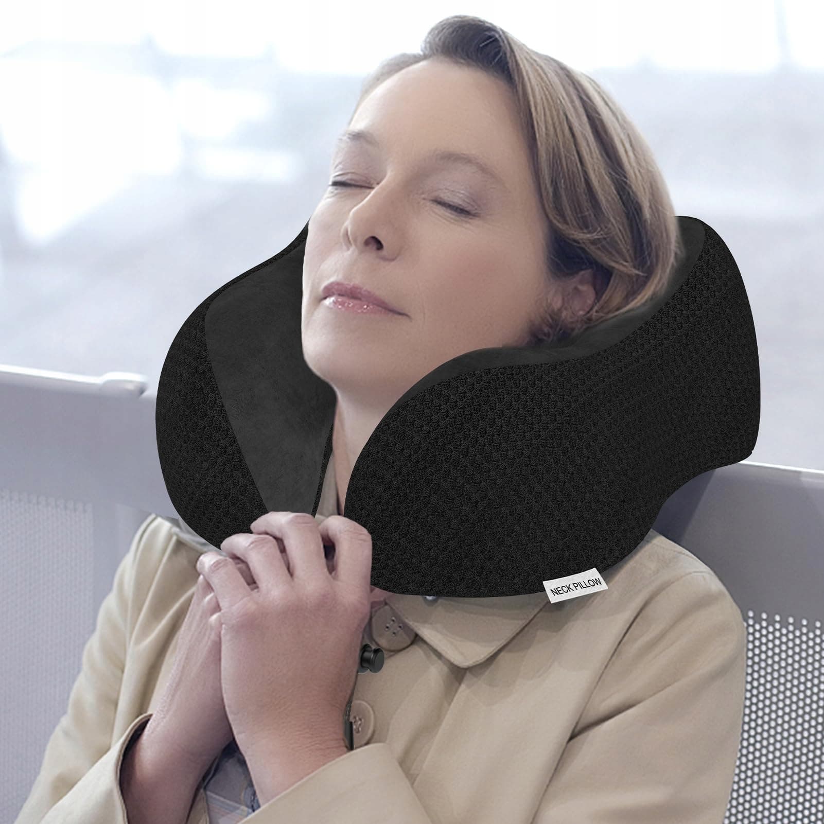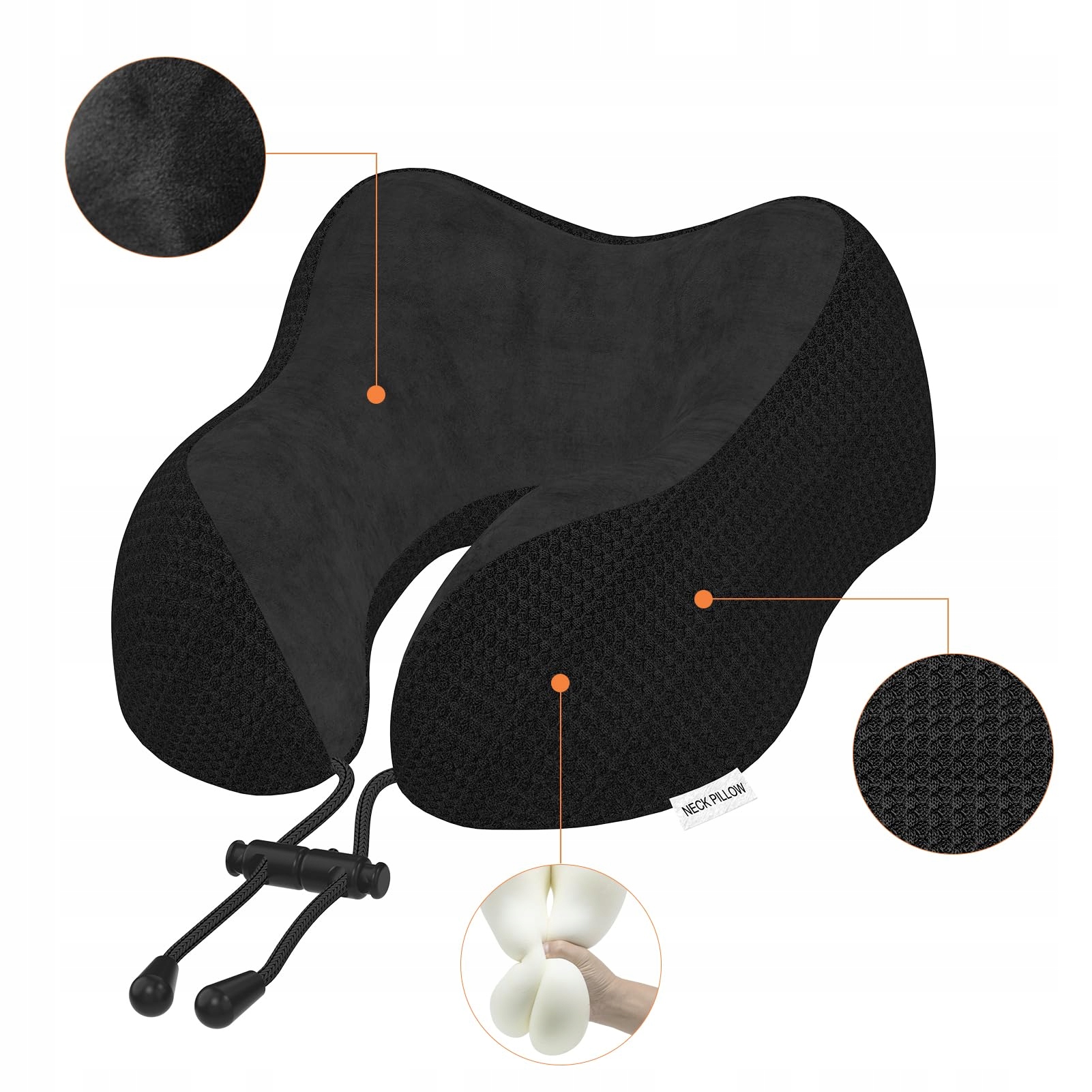 Poduszka podróżna Yomisee, poduszka do samochodu z pianki memory z miękkim pokryciem, poduszka na szyję dla dorosłych na podróże, kemping, biuro i dom (Czarna)