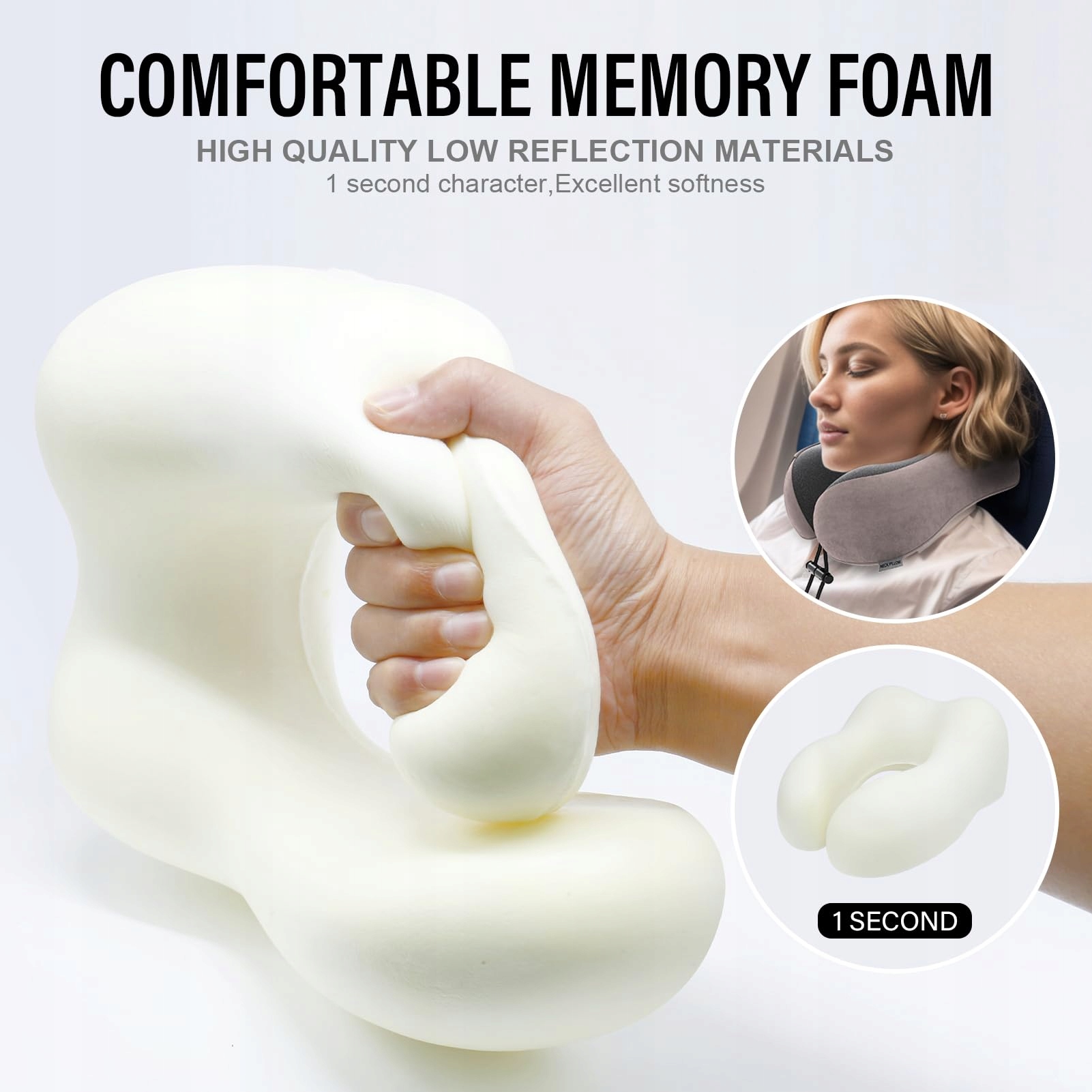 YOMISEE Piankowa Poduszka Podróżna Do Samolotu Samochodu Beżowa 25x28cm | Premium Supply