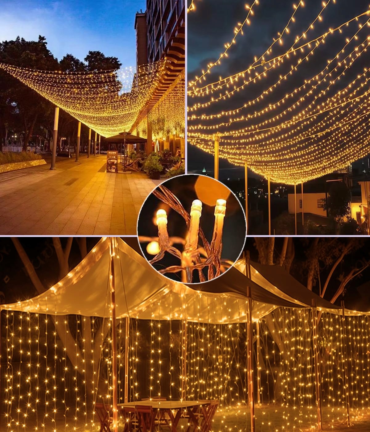 Możliwość podłączenia zasłony świetlnej na zewnątrz - Złącza na końcach każdego sznura sprawiają, że bardzo łatwo je połączyć, aby stworzyć idealną długość. Połącz swoją zasłonę świetlną LED, aby móc obsługiwać do 1800 LED z jednego gniazdka. Będzie miała 18 metrów długości i 3 metry wysokości, wyobraź sobie, jaki oszałamiający efekt dekoracyjny osiągniesz w centrum handlowym, restauracji lub barze