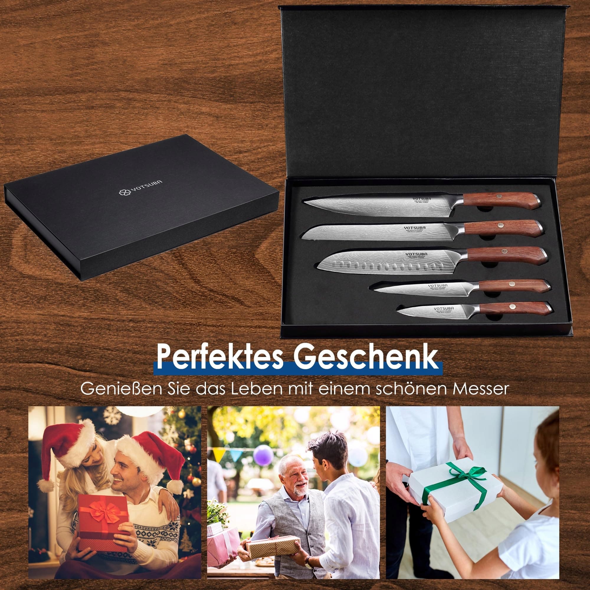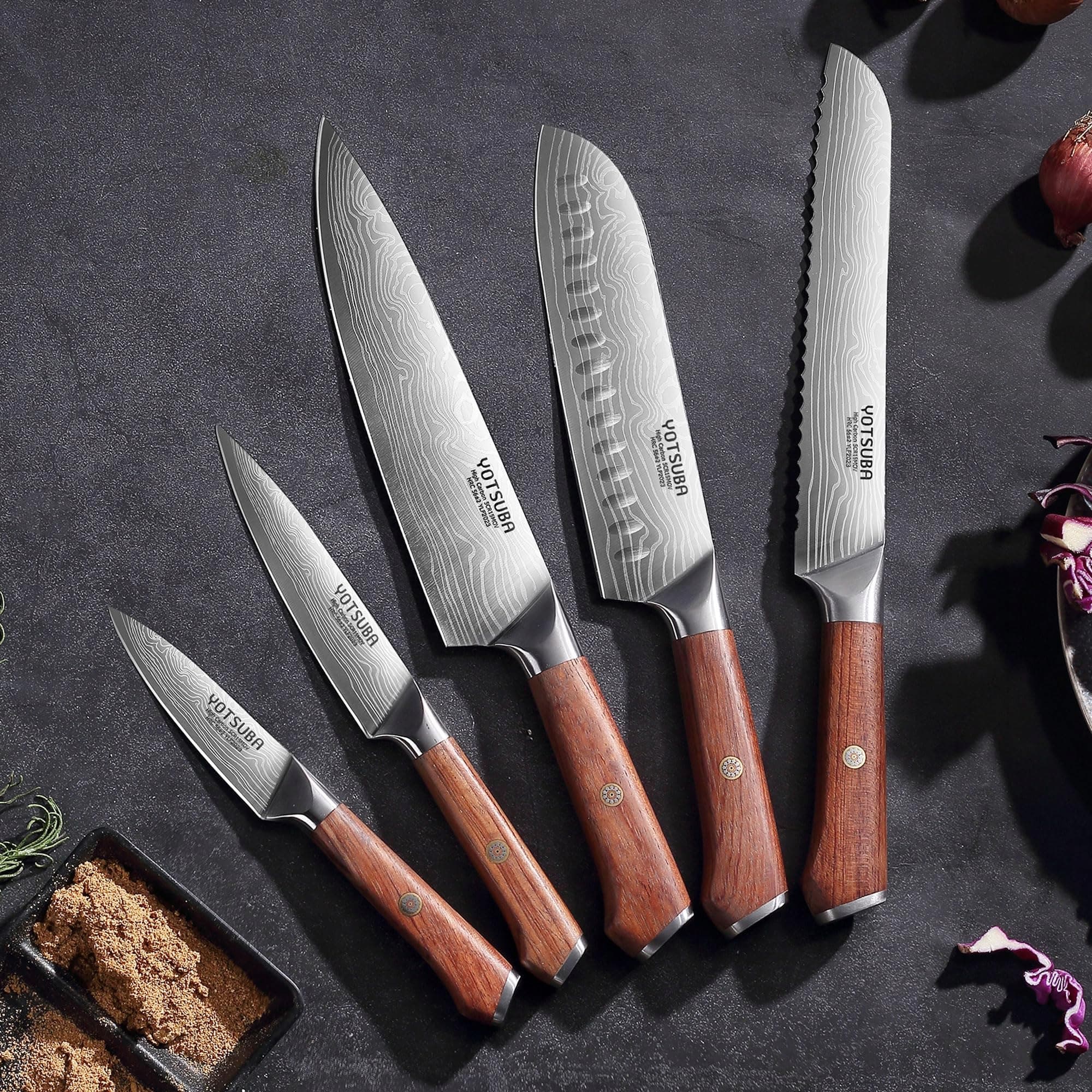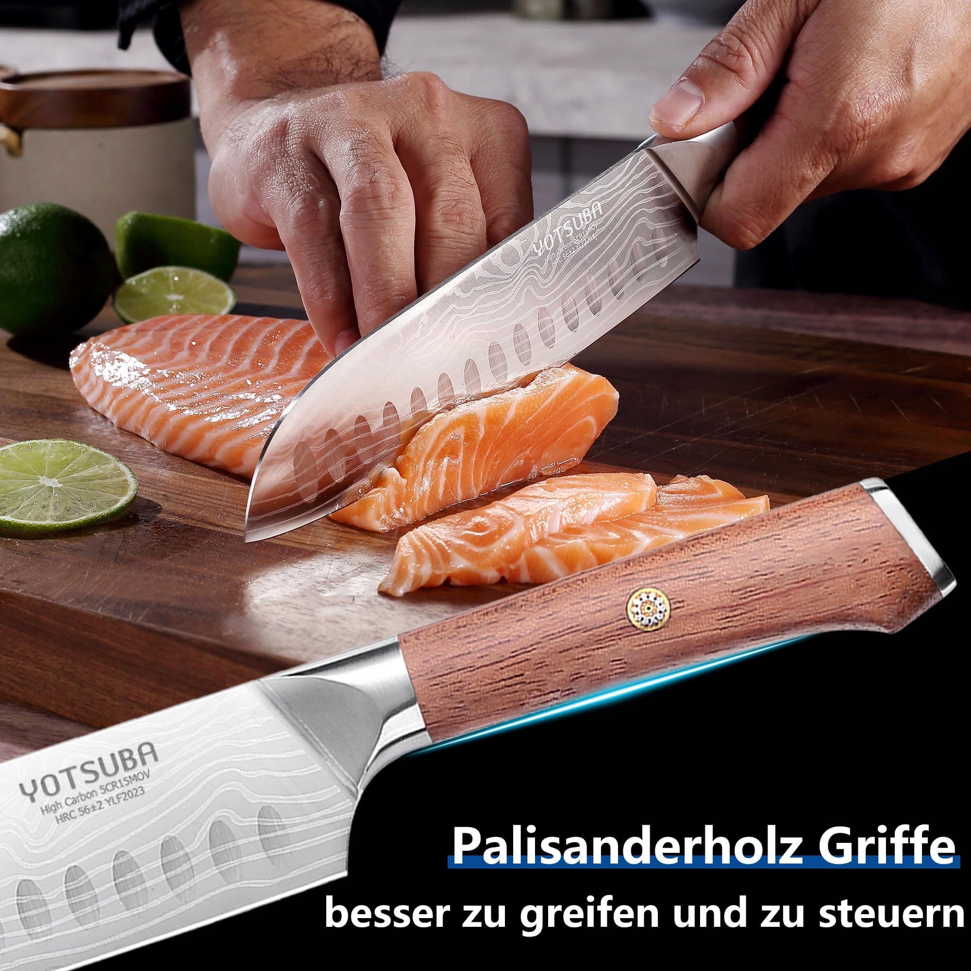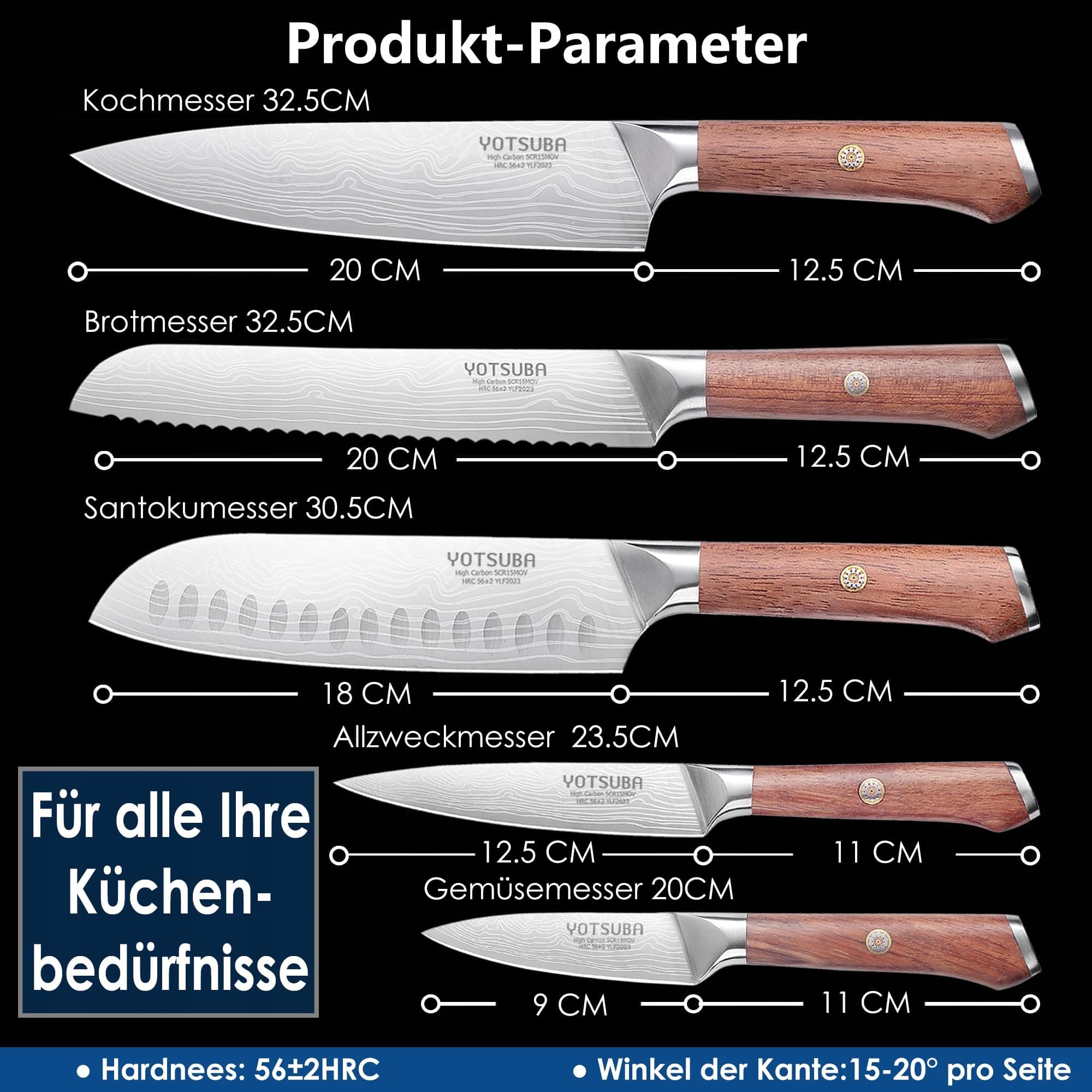Zestaw noży kuchennych YOTSUBA 5-częściowy Zestaw noży Ostry Kuchnia z wysokiej jakości stali węglowej, Ultra Ostry zestaw noży z nożem kuchennym, nożem do chleba, nożem Santoku, nożem uniwersalnym, nożem do warzyw