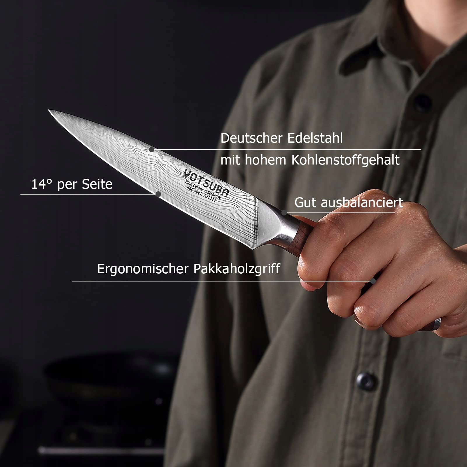 Noż uniwersalny YOTSUBA, 12,7 cm, mały nóż kuchenny do siekania, krojenia, obierania i krojenia owoców i warzyw, niemieckiej stali hartowanej, ostry nóż stołowy