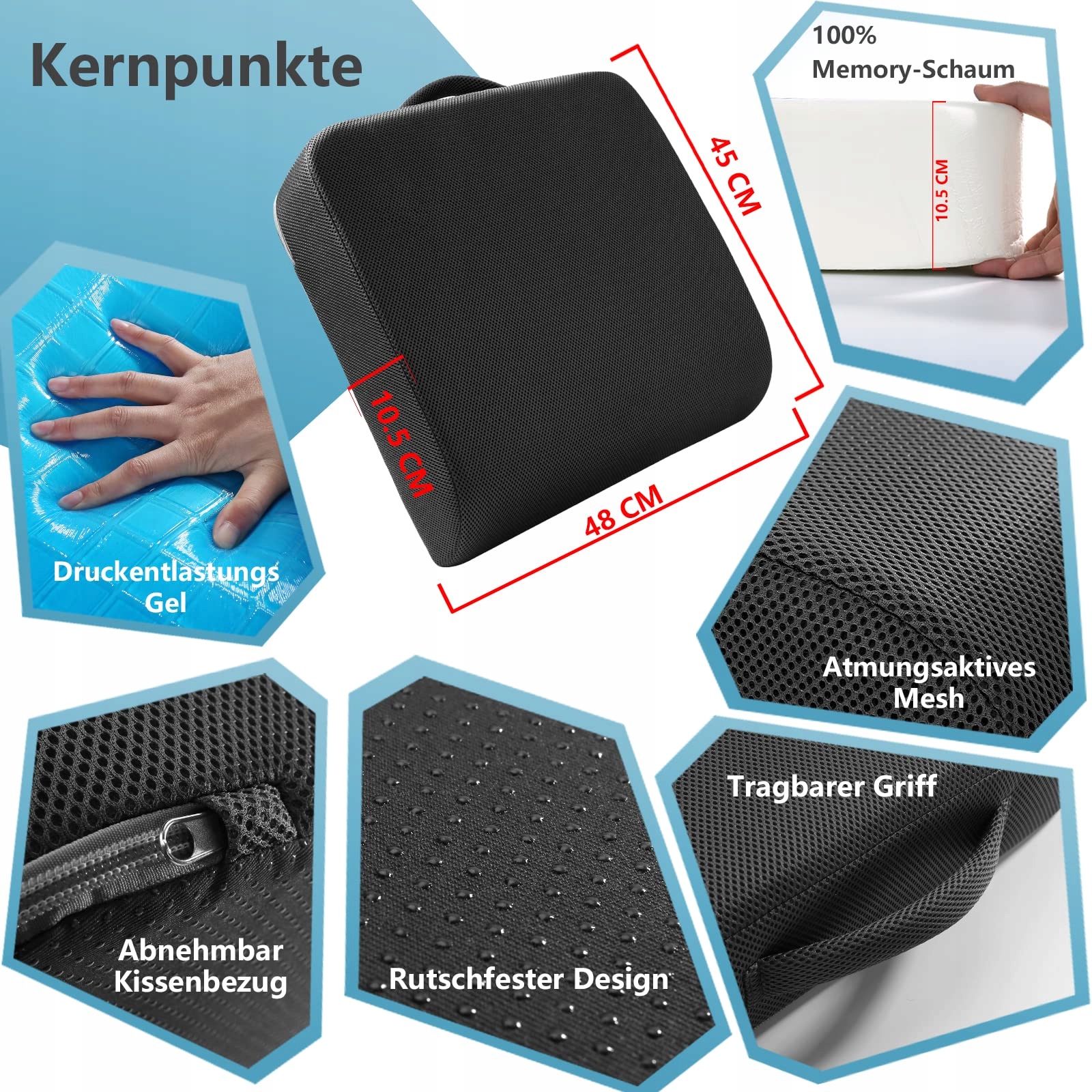 ✔ Przenośny i trwały: Ta poduszka jest wyposażona w praktyczny uchwyt do łatwego noszenia. Spód jest pokryty antypoślizgowymi ziarnami, aby zapewnić, że poduszka pozostaje na swoim miejscu. Pokrowiec wykonany jest z trwałego materiału, co czyni go odpowiednim do krzeseł biurowych, drewnianych krzeseł, foteli samochodowych, wózków inwalidzkich i wielu innych. Jest idealny do użytku w biurze, w domu i w podróży.
