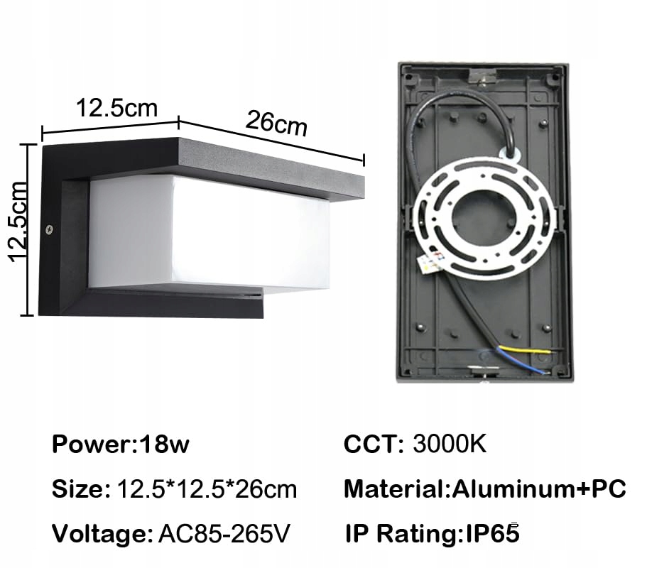 18W lampy ścienne LED wykonane z wysokiej jakości odlewu aluminiowego. Korpus lampy jest solidny i wykazuje doskonałą odporność na nacisk i korozję. Kinkiet do wnętrz ma nowoczesny design, prosty i elegancki. Moc: 18W; kolor obudowy: czarny, rozmiar: 12,5x12,5x26 cm