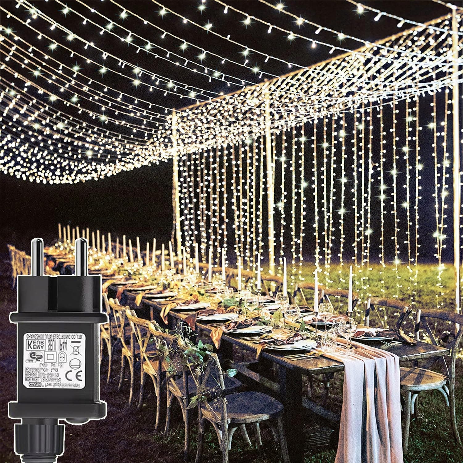 Funkcja łączenia i dostarczone artykuły - Obsługuje połączenie do 4 świateł, co oznacza, że możesz mieć światło o długości do 24 metrów z 3-metrowym spadkiem, co daje niesamowity efekt dekoracyjny, szczególnie odpowiedni dla dużych centrów handlowych, ślubów i hoteli. Zawartość opakowania: 600 LED Kurtyna świetlna x 1, Wtyczka 31V x 1, Instrukcja x 1.