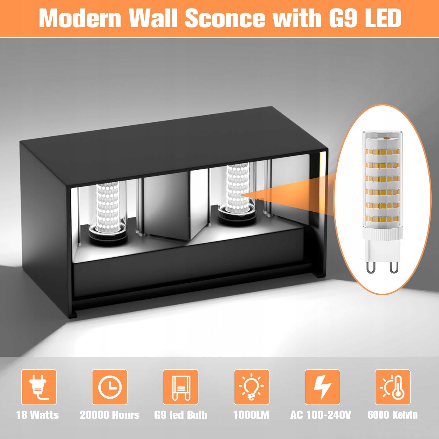 OSZCZĘDZAJ PIENIĄDZE I CHROŃ ŚRODOWISKO - Cała lampa ścienna do wnętrz/na zewnątrz wykonana jest z recyklingowanego czystego aluminium. W zestawie znajduje się 1 lampa ścienna i 2 żarówki LED G9 9W 3000K ciepła biel. Wydajna, energooszczędna, przyjazna dla środowiska i oszczędzająca pieniądze. Ochrona przed zwarciem i uziemienie zapewniają bezpieczne użytkowanie lamp!