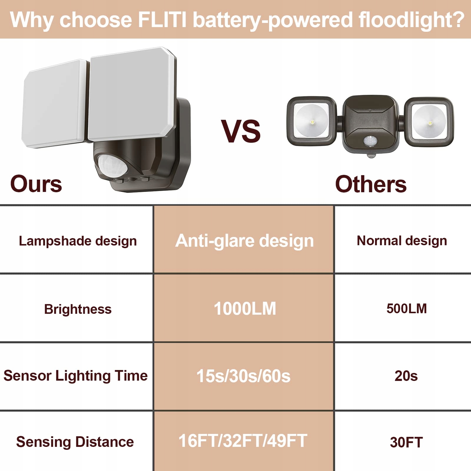 【Elastyczny czujnik】Tryb wykrywania i czas oświetlenia są regulowane, aby dopasować się do różnych scenariuszy. Dostępne są 3 czasy oświetlenia (15S/30s/60s) oraz 3 opcje zasięgu wykrywania (L/M/H), kąt detekcji wynosi 160°, a maksymalna odległość wykrywania to 49 stóp, co zapewnia terminowe oświetlenie i bezpieczniejsze środowisko mieszkalne.