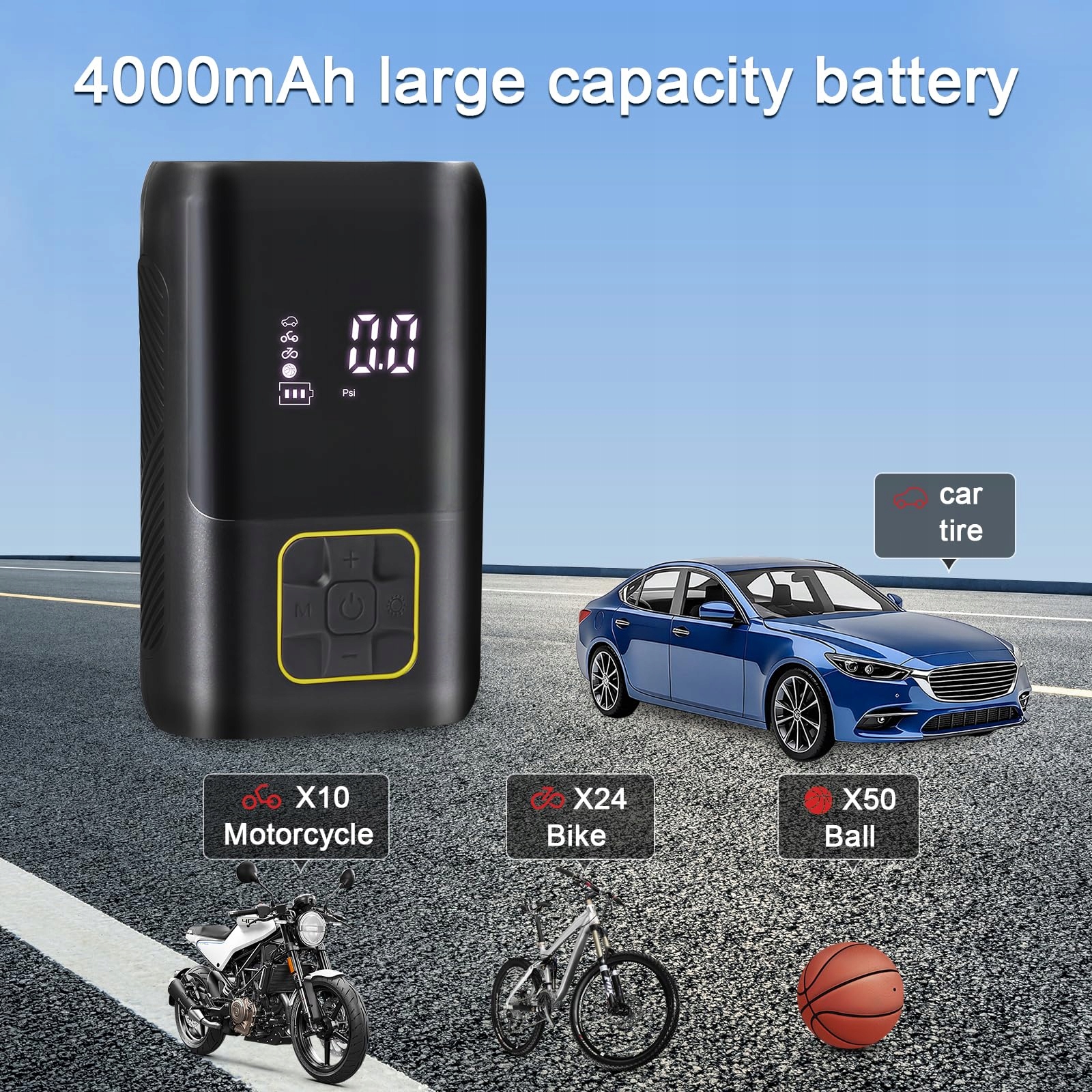 Yuanjoy pompka powietrza 150PSI elektryczny kompresor przenośna pompka rowerowa wielofunkcyjna pompka do opon z cyfrowym wyświetlaczem LED światło LED akumulator ładowalny do wszystkich rowerów, motocykli i samochodów