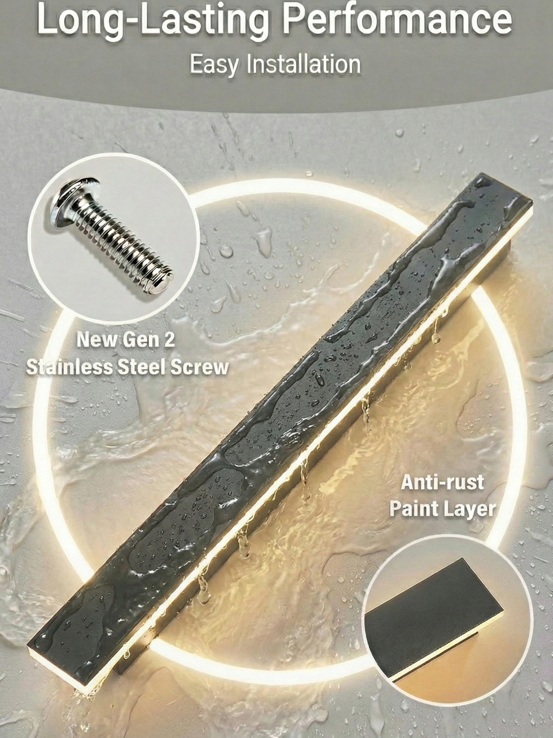 Parametry lampy ściennej: mamy dla Ciebie trzy rozmiary, aby dopasować się do różnych scenariuszy, długości to 30cm/60cm/100/120/150cm, szerokość: 5cm, grubość: 4cm, moc: 10W/20W/30W/32W/42W, temperatura barwowa: 3500K ciepłe światło.