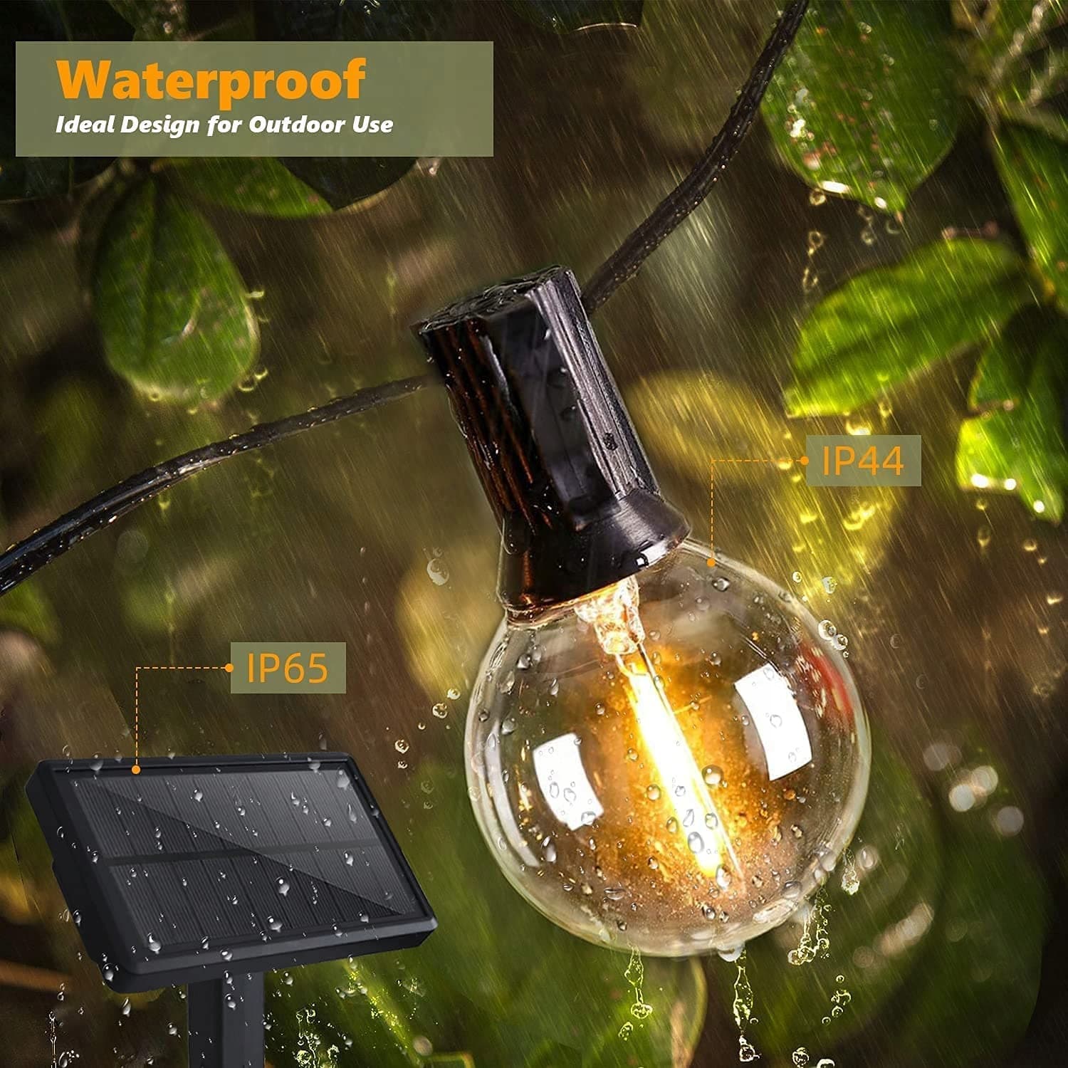 💡[Wodoodporne i odporne na stłuczenia]Nasze LED solarne łańcuchy świetlne składają się z mocnych, trwałych gumowych sznurków, nietłukących się żarówek PET, które mogą wytrzymać wszystkie warunki pogodowe, takie jak deszcz, wiatr, śnieg, mróz i wilgotny klimat. Panel słoneczny jest wodoodporny IP65, żarówka G40 jest wodoodporna IP44