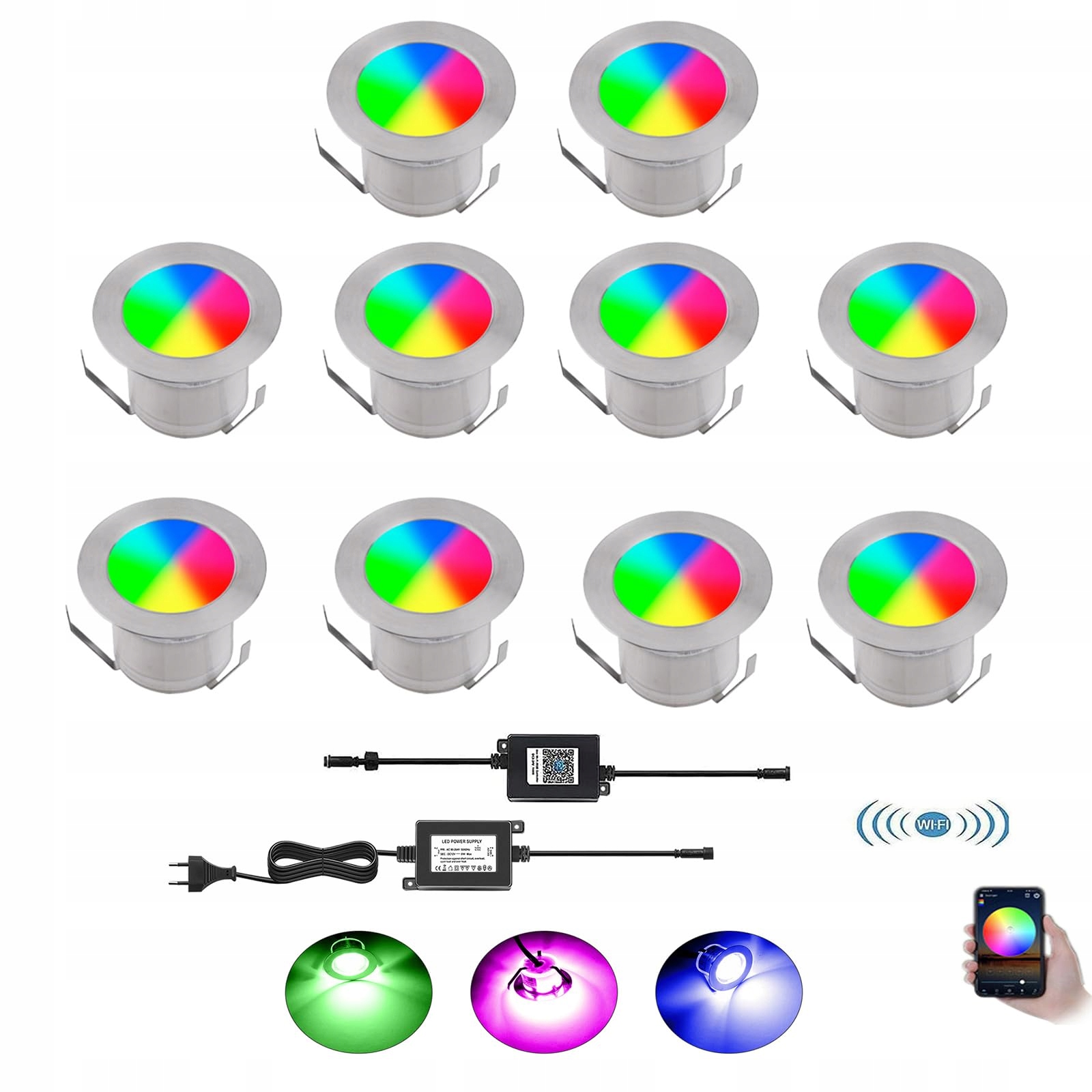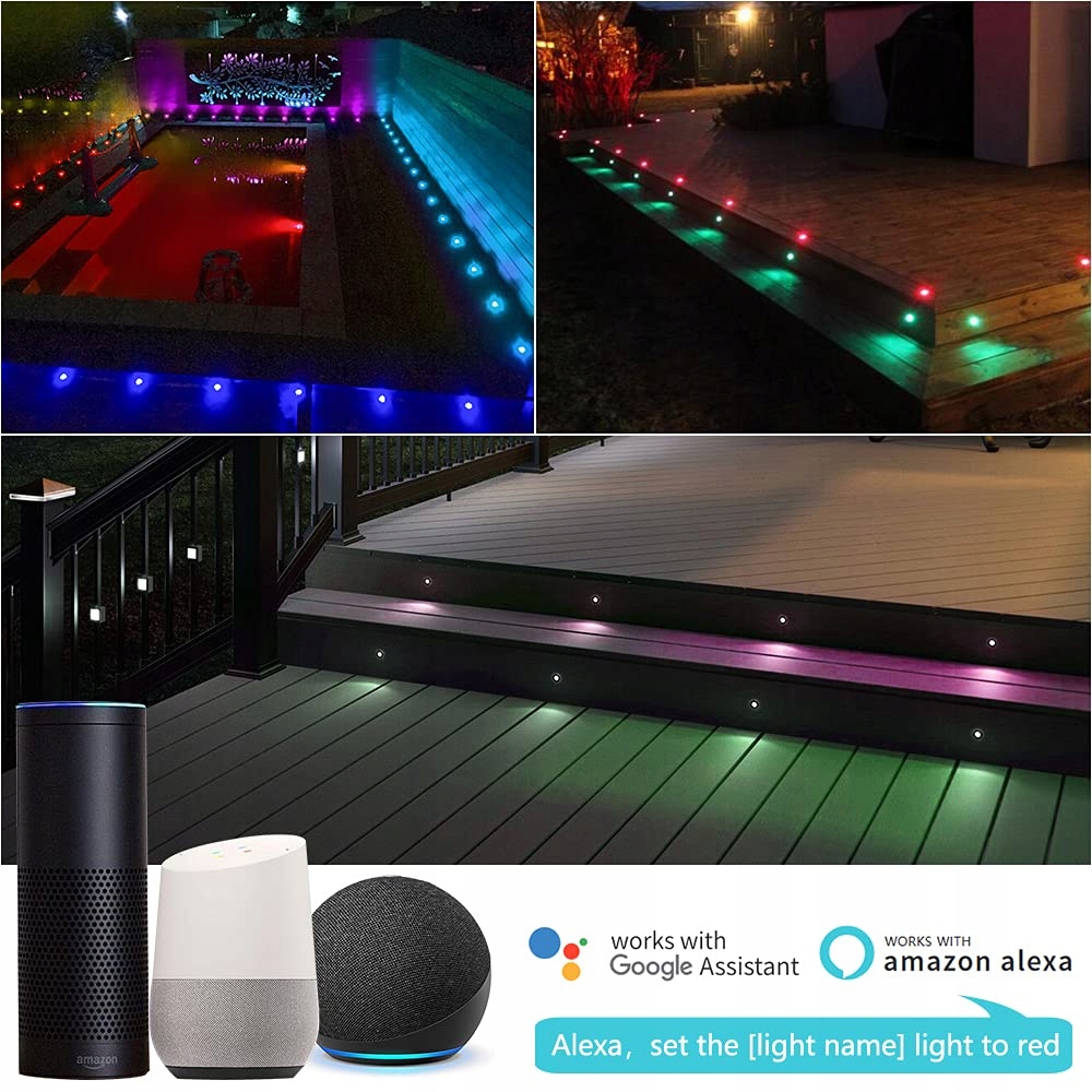 YZGWZLD WIFI wpuszczane reflektory tarasowe Zestaw 10 szt. LED reflektory podłogowe RGB IP67 wodoodporne do użytku na zewnątrz i wewnątrz Ogród Drewniany mostek Basen Drewniany taras w zestawie z zasilaczem 12V mini reflektory wpuszczane