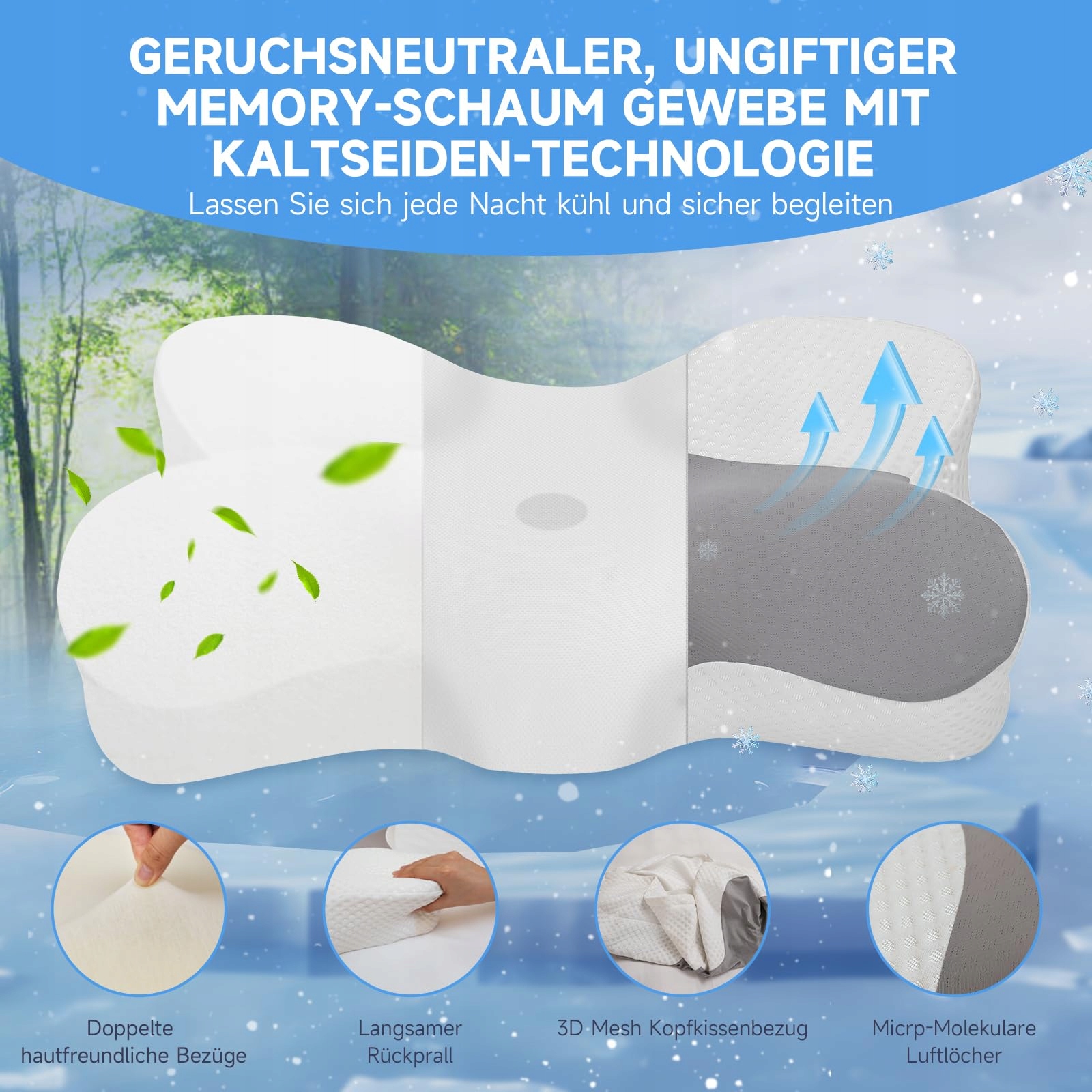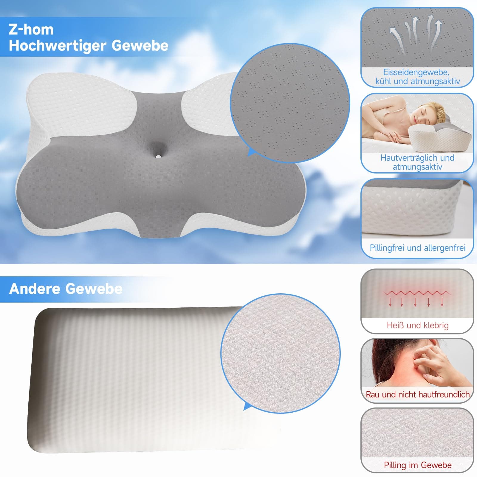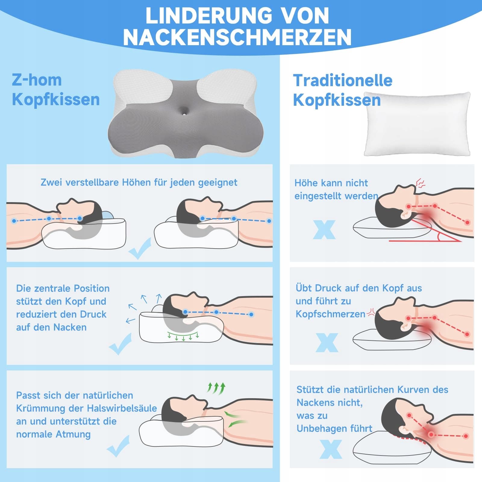 Kissen Z-hom z pianki memory, poduszka ortopedyczna, ergonomiczne podparcie szyi, idealne dla osób śpiących na boku, plecach i brzuchu