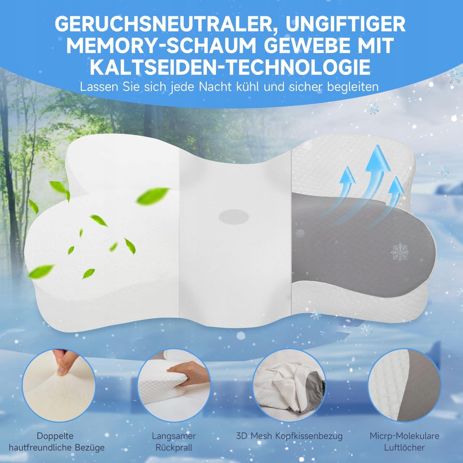 [Przyjazny dla skóry, oddychający i ekologiczny pokrowiec]Pokrowiec tej poduszki podparcia szyi składa się w 40% z wiskozy z lodowego jedwabiu i w 60% z włókien poliestrowych. Materiał z lodowego jedwabiu jest oddychający i chłodny, przyjazny dla skóry i wygodny, utrzymując Cię w chłodzie podczas snu. Pokrowiec poduszki jest zapinany na zamek błyskawiczny i można go zdjąć do prania. Wszystkie materiały są produkowane z bezpiecznych i zgodnych chemikaliów, aby zapewnić Twoje zdrowie.