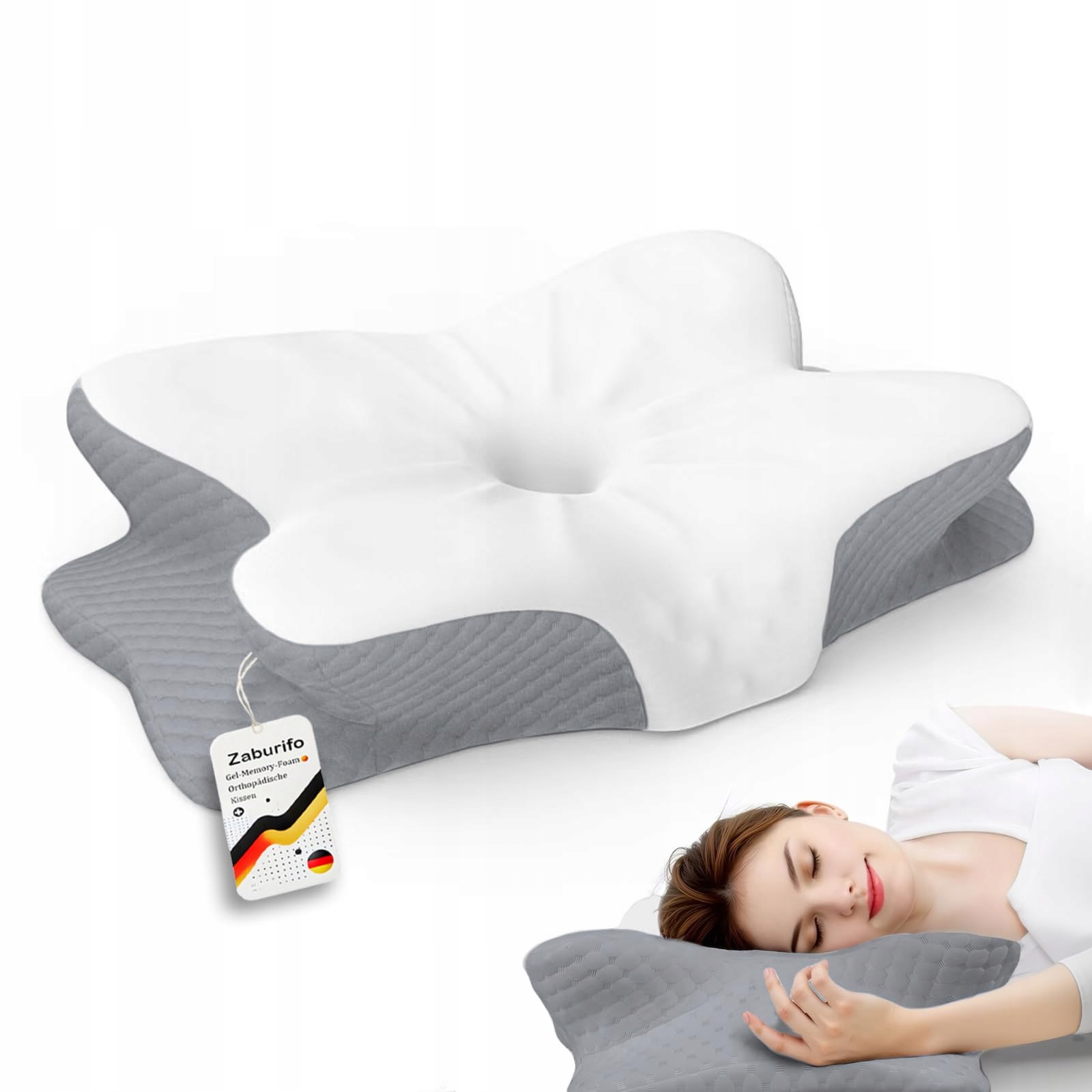ZABURIFO Poduszka Ortopedyczna z Pianką Memory na Ból Szyi Biała Szara | Premium Supply