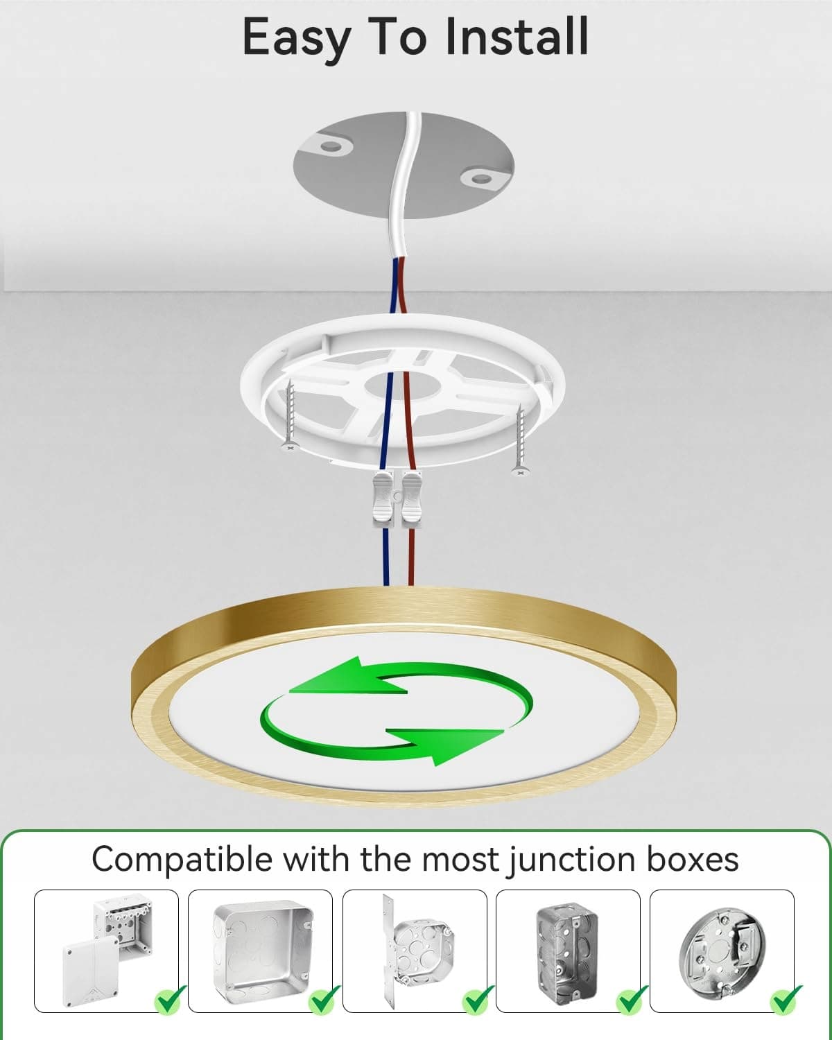 Łatwy w instalacji: Lampa sufitowa LED dostarcza szczegółowe instrukcje instalacji i akcesoria, nie ma potrzeby angażowania fachowców, wystarczy podłączyć przewody, przykręcić lampę LED do podstawy, 3 proste kroki do zakończenia! Wysokiej jakości ognioodporna obudowa z tworzywa sztucznego panelu LED skutecznie zapobiega porażeniom prądem, wyciekom i innym zagrożeniom, aby chronić Twoją rodzinę