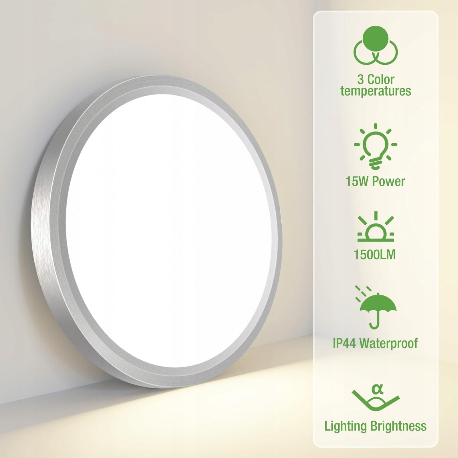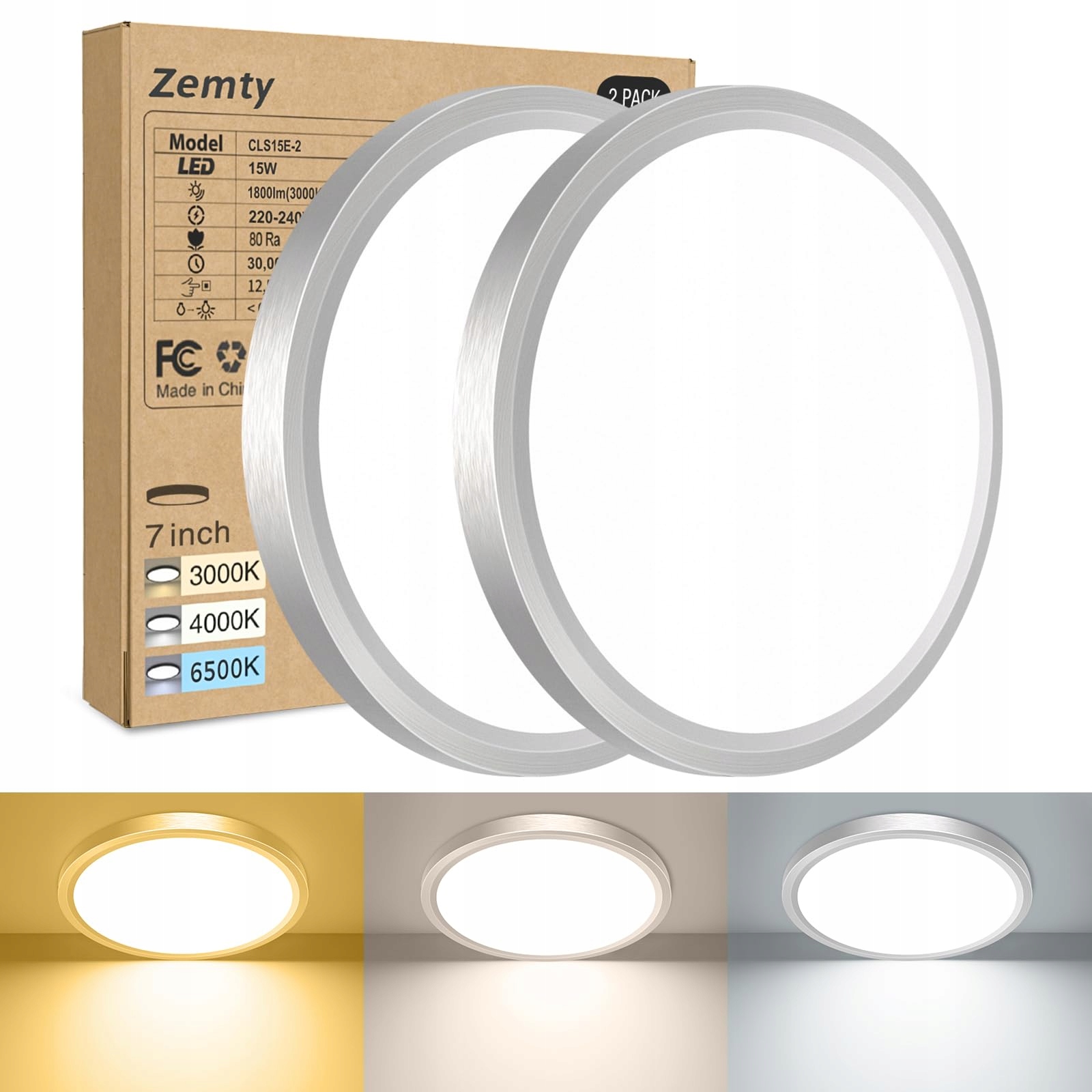 ZEMTY LED Lampa Sufitowa 15W 1800LM 3 Kolory Do Kuchni i Łazienki