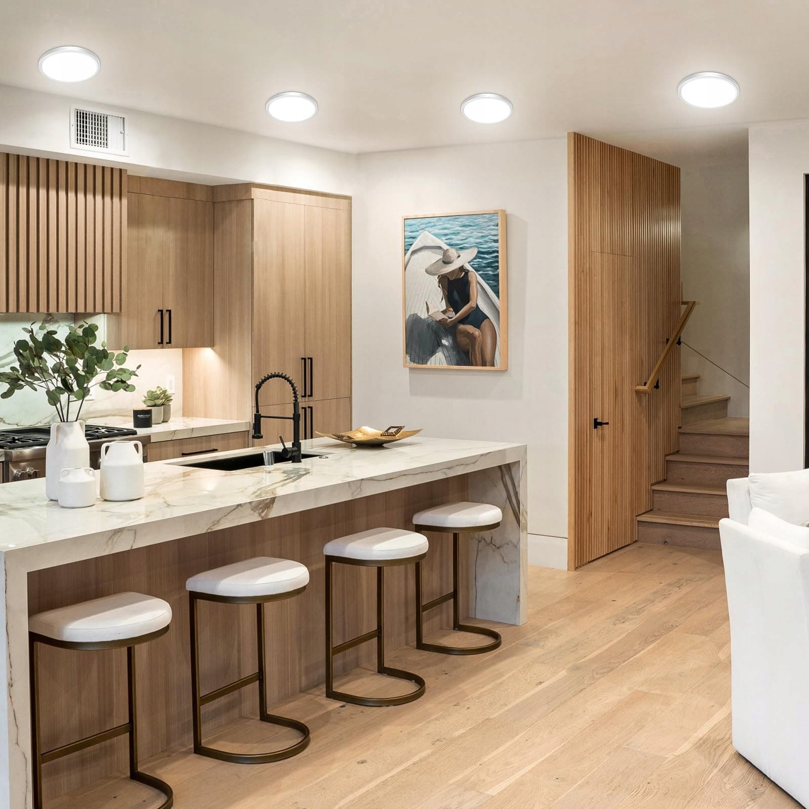 Chroń swoje oczy: Dzięki zastosowaniu diod LED bez migotania światło jest łagodniejsze i może spełnić codzienne potrzeby oświetleniowe całej rodziny. CRI>80 wysoka reprodukcja kolorów, która zapewnia Twoim oczom bardziej realistyczne i komfortowe doświadczenie świetlne. Jest idealna do pomieszczeń z niskimi sufitami i często używana w pomieszczeniach o powierzchni 8-15㎡