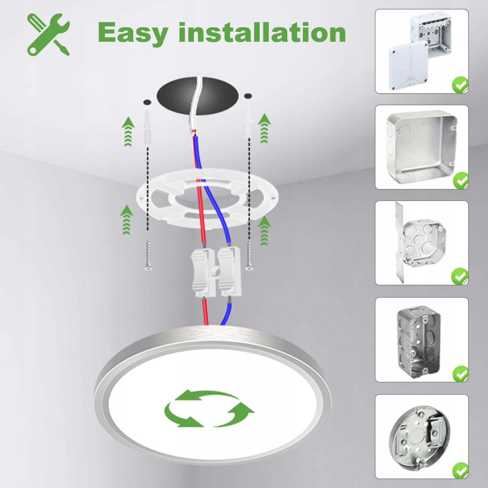 Bezpieczna i oszczędna: Jako zamiennik tradycyjnych żarówek, ta lampa sufitowa 15W pozwala zaoszczędzić pieniądze na rachunkach za prąd. Wysokiej jakości obudowa z tworzywa sztucznego ognioodpornego prowadzi panel, który skutecznie zapobiega porażeniu prądem, wyciekom i innym zagrożeniom, aby chronić bezpieczeństwo Twojej rodziny. Idealna do lampy w korytarzu, lampy sufitowej w łazience, lampy w pokoju dziecięcym