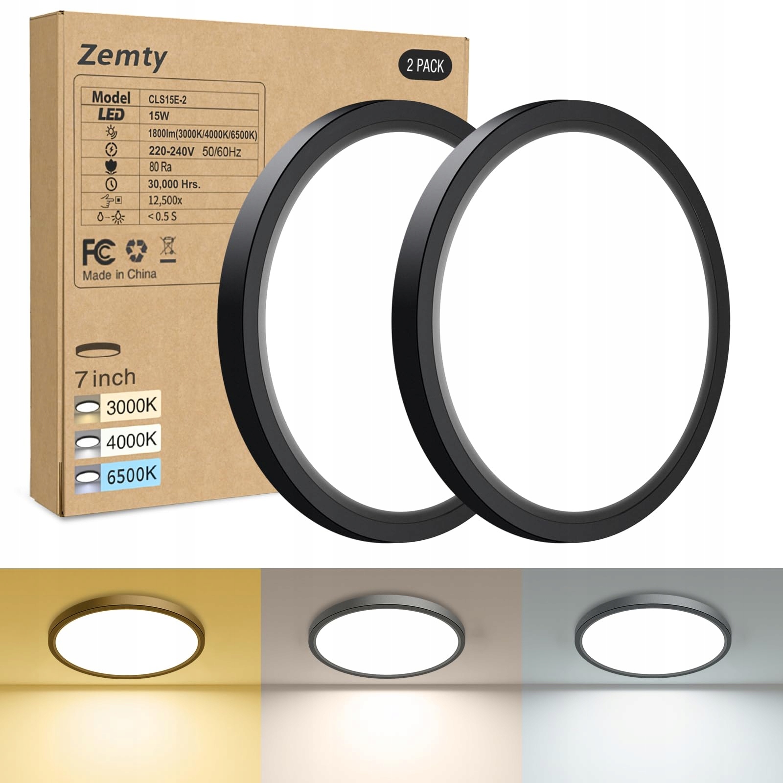 ZEMTY LED Lampa Sufitowa 15W 1800LM Czarna Do Kuchni i Łazienki | Premium Supply