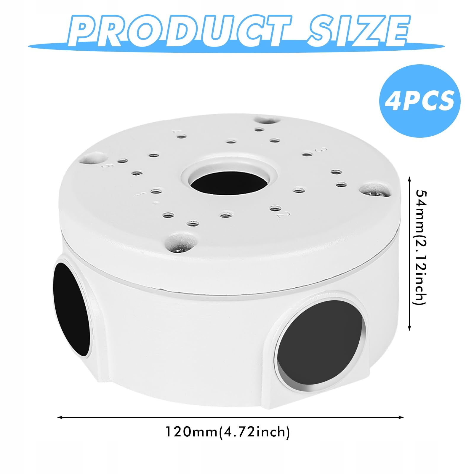 【Specyfikacje produktu】 Wodoodporne gniazdo przyłączeniowe kamery ma następujące wymiary: średnica: 118 mm, wysokość: 53 mm, średnica otworu półkulistej ukrytej puszki: 24 mm, średnica otworu na śruby: 24 mm. (Proszę potwierdzić rozmiar przed zakupem)
