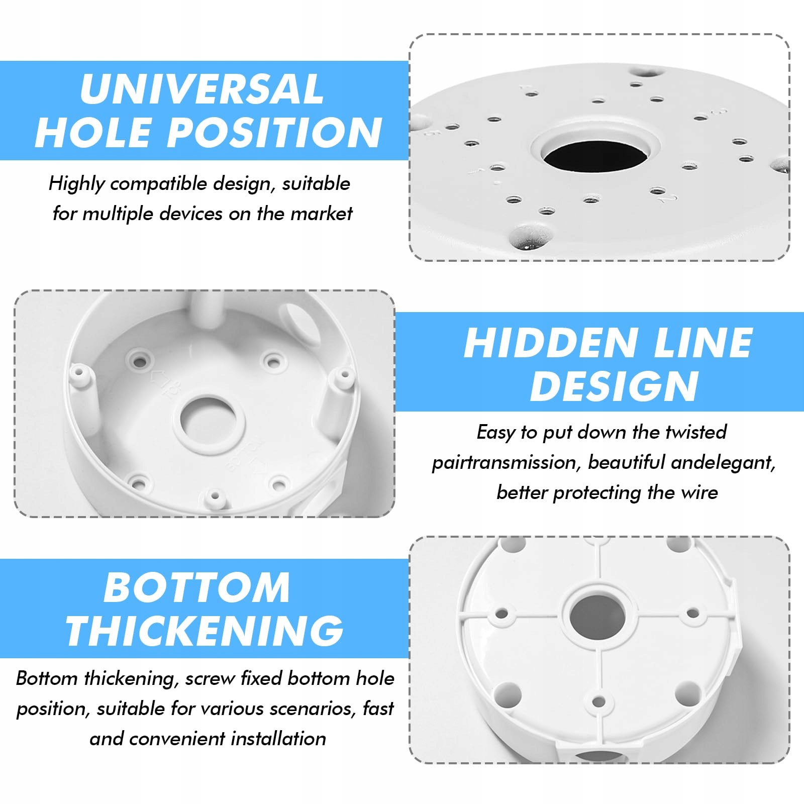 Gniazdo przyłączeniowe kamery, 4 sztuki półkulistych puszek montażowych do kamer nadzoru, stojak na kamerę internetową, puszka montażowa do kamer nadzoru, puszka rozgałęźna ukrytego kabla, do użytku wewnętrznego i zewnętrznego, plastik