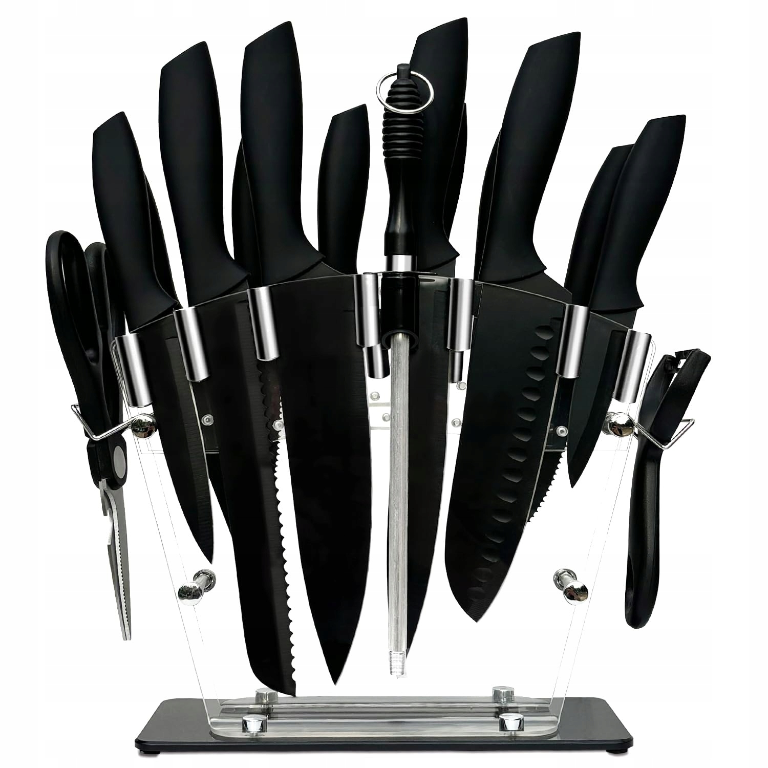 16 PCS Zestaw noży kuchennych ze stali nierdzewnej Zestaw noży kucharskich Well Balance Ergonomiczny uchwyt (16 PCS Zestaw-Czarny)