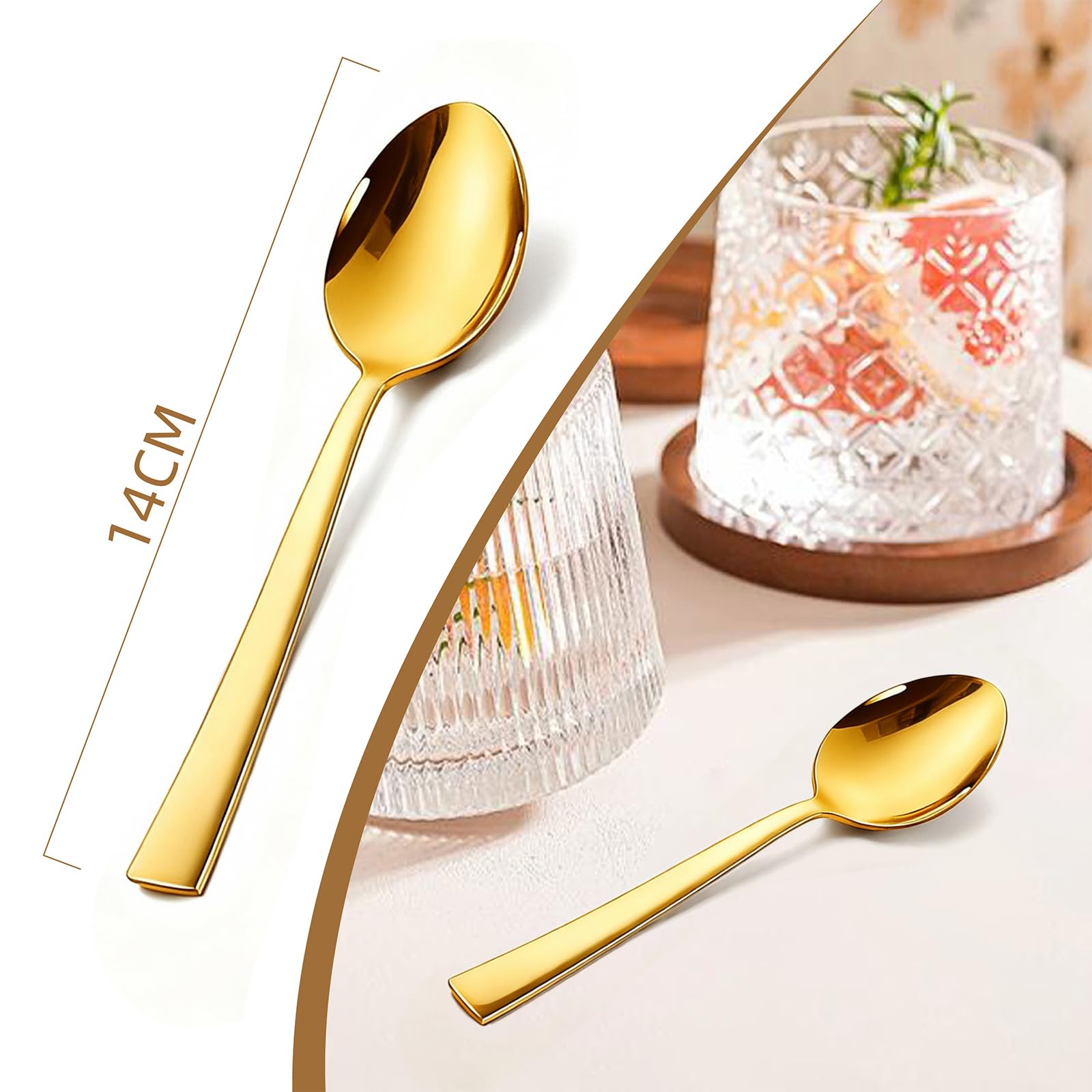 【Nadaje się na różne okazje】Te małe łyżeczki są wielofunkcyjne, niezależnie czy do codziennego użytku, czy do przechowywania na święta i formalne wydarzenia takie jak wesela, przyjęcia, uroczystości rodzinne, pikniki i grill. Są również idealnym wyborem dla restauracji, bistro, kawiarni, punktów gastronomicznych i hoteli.
